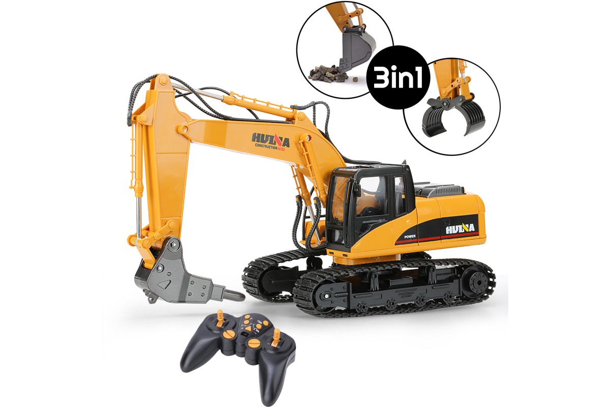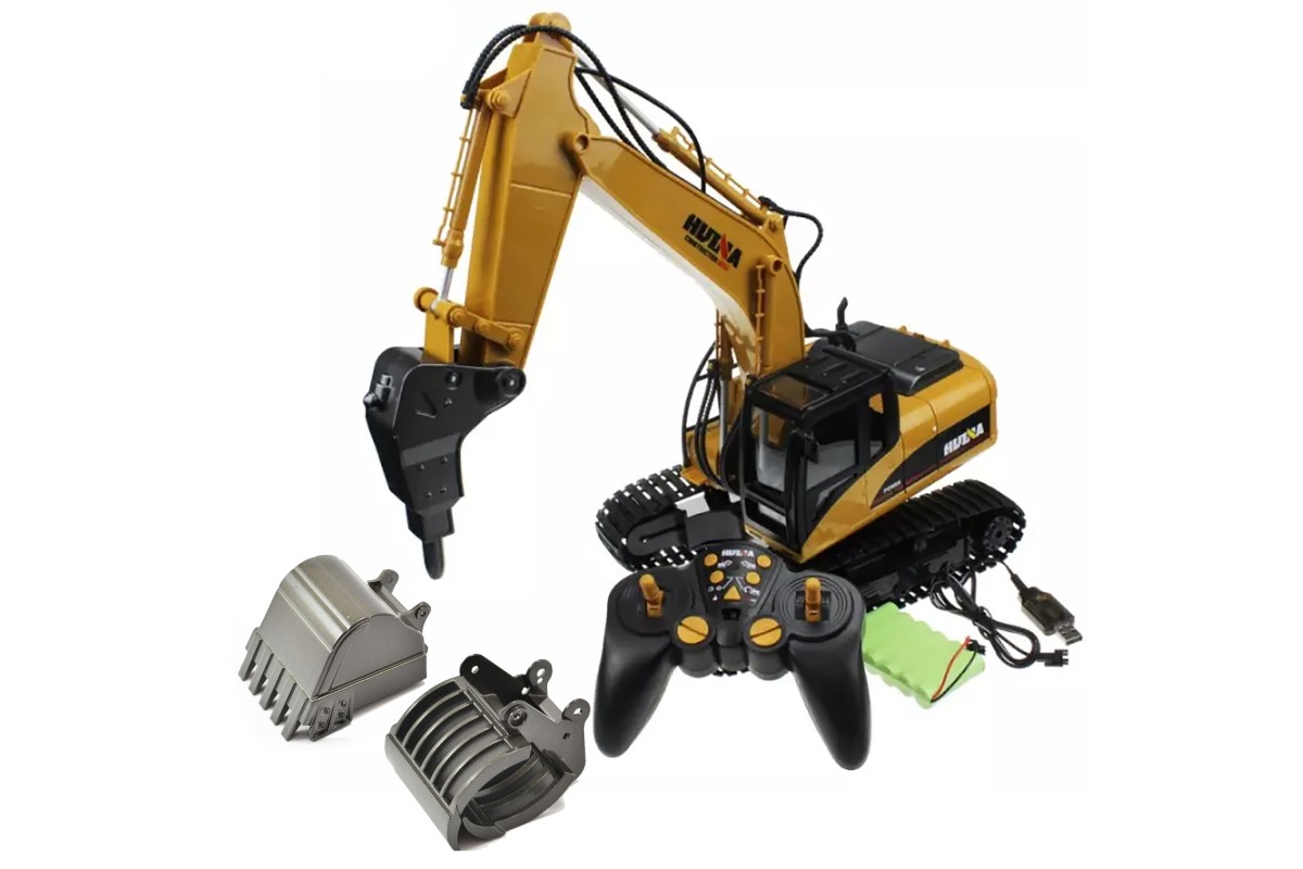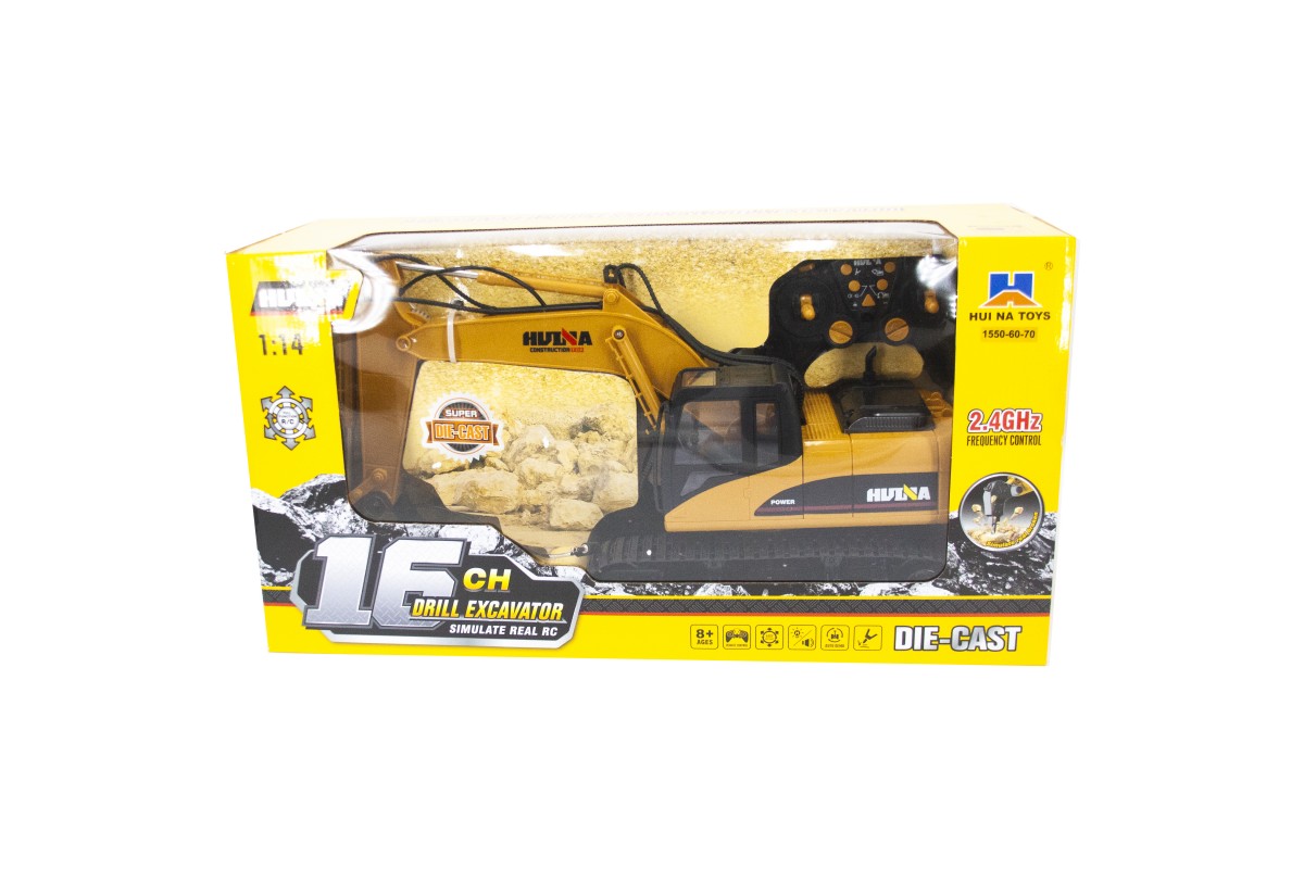 Радиоуправляемый экскаватор HUINA 3in1 (ковш, отбойник, захват бревен) 1:14 2.4G - HN1550-60-70 - это копия настоящего экскаватора, отличный пример современной и функциональной строительной техники для детей. Модель была разработана совместно с нашей компанией. В комплекте сменные насадки для создания сразу трех моделей: HN1550, HN1560 и HN1570.