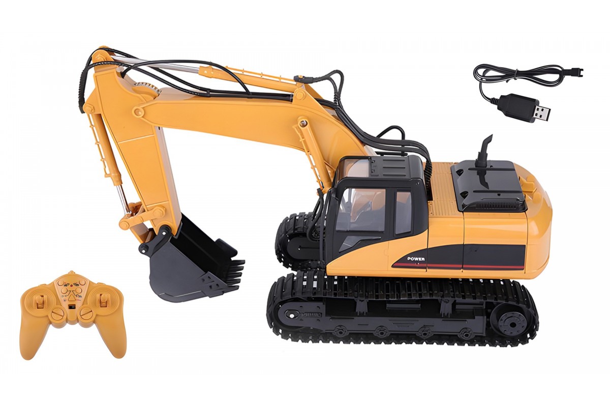 Комплектация: Экскаватор, пульт 2,4G 15CH, USB-кабель для зарядки, аккумулятор.