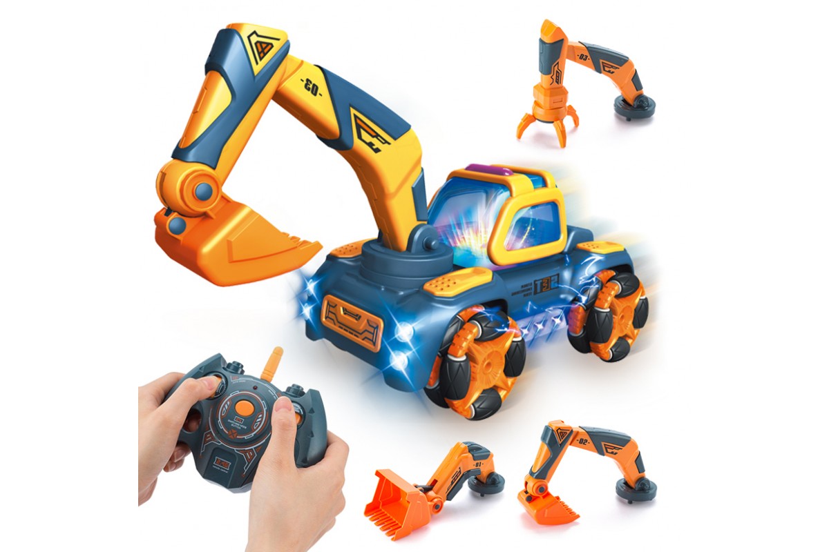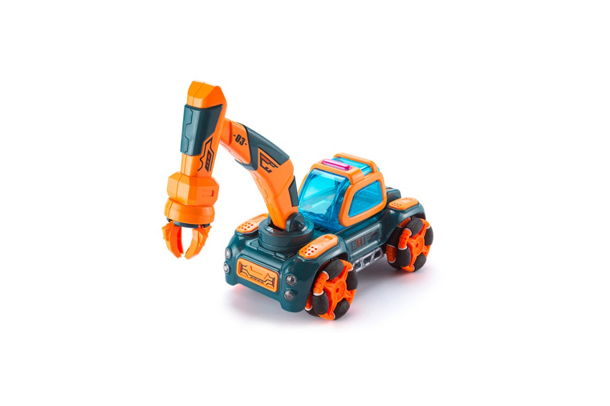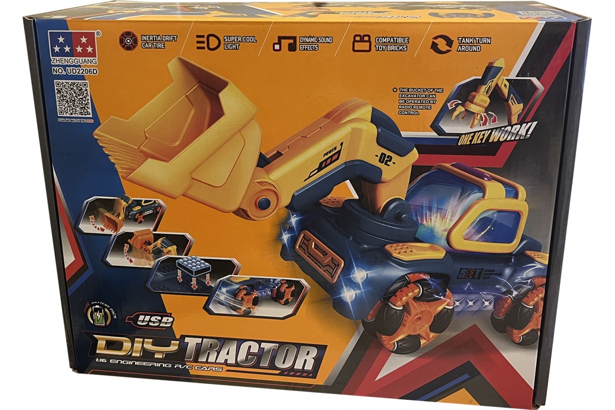 Радиоуправляемый экскаватор ZhengGuang 3in1 DIY (ковш, захват, отвал) - UD2206D - уникальная машинка с дрифт колесами и сменными насадками для разнообразия игры. В комплекте набор для самостоятельной сборки 3-х разных моделей.