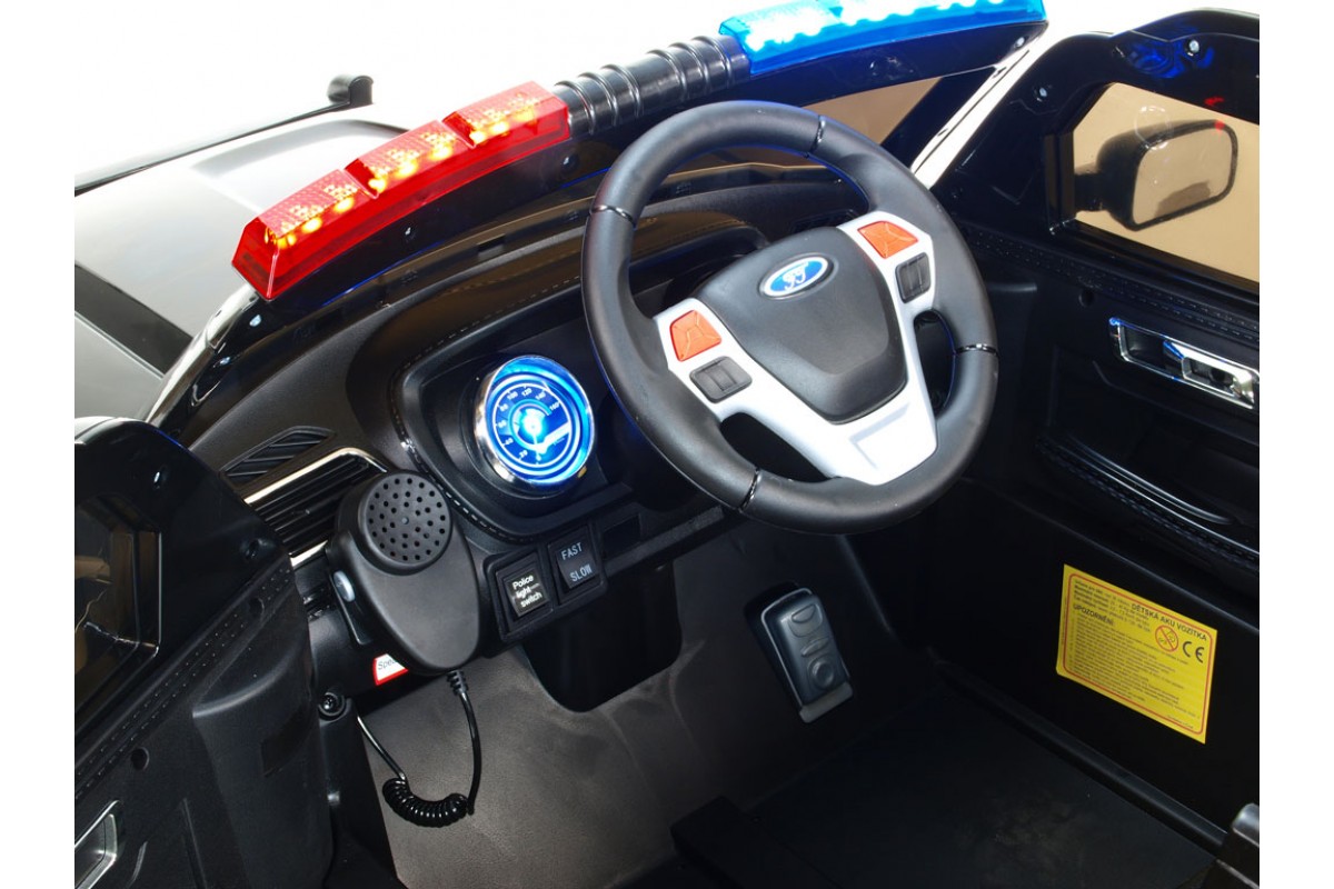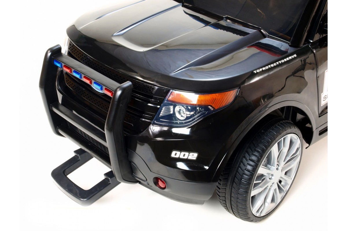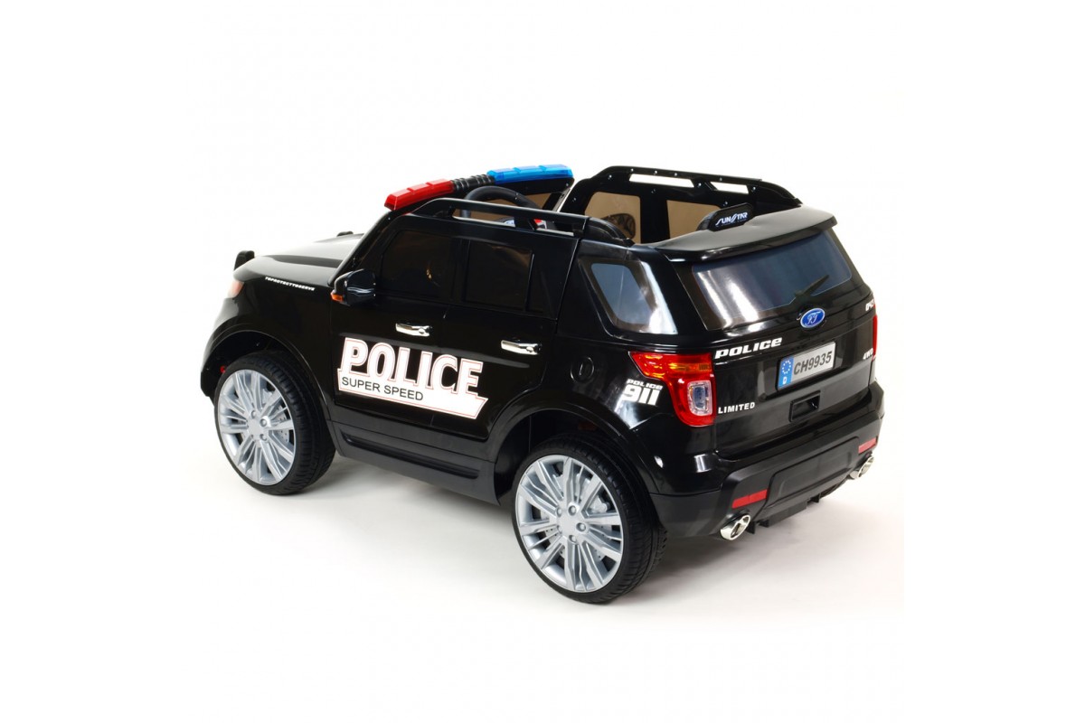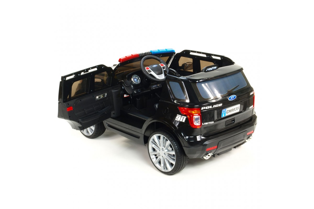 Радиоуправляемый электромобиль Ford Explorer Police Black 12V 2.4G- CH9935 - это полицейский джип непременно понравится юным водителям. Электромобиль Police (CH 9935) выполнен из качественного пластика, оборудован мягким кожаным креслом с ремнем безопасности, широкими резиновыми колесами, горящими фарами, габаритными огнями и сигнальными лампами. Кроме того, в машинке есть действующий громкоговоритель, который обязательно оценит ребенок. В управлении электроджип прост - запуск двигателя с кнопки, две скорости вперед, одна назад. В комплект входит пульт ДУ. Подсвеченная приборная панель, руль с кнопками "клаксон" и "музыка," возможность прослушивать любимые мелодии (выходы для MP3, USB, радио) - здесь продумано все, для увлекательной поездки. А для удобной транспортировки предусмотрена специальная ручка под передним бампером машины. Максимальная нагрузка составляет 35 кг, вес равен 19 кг, возрастная категория 1+.