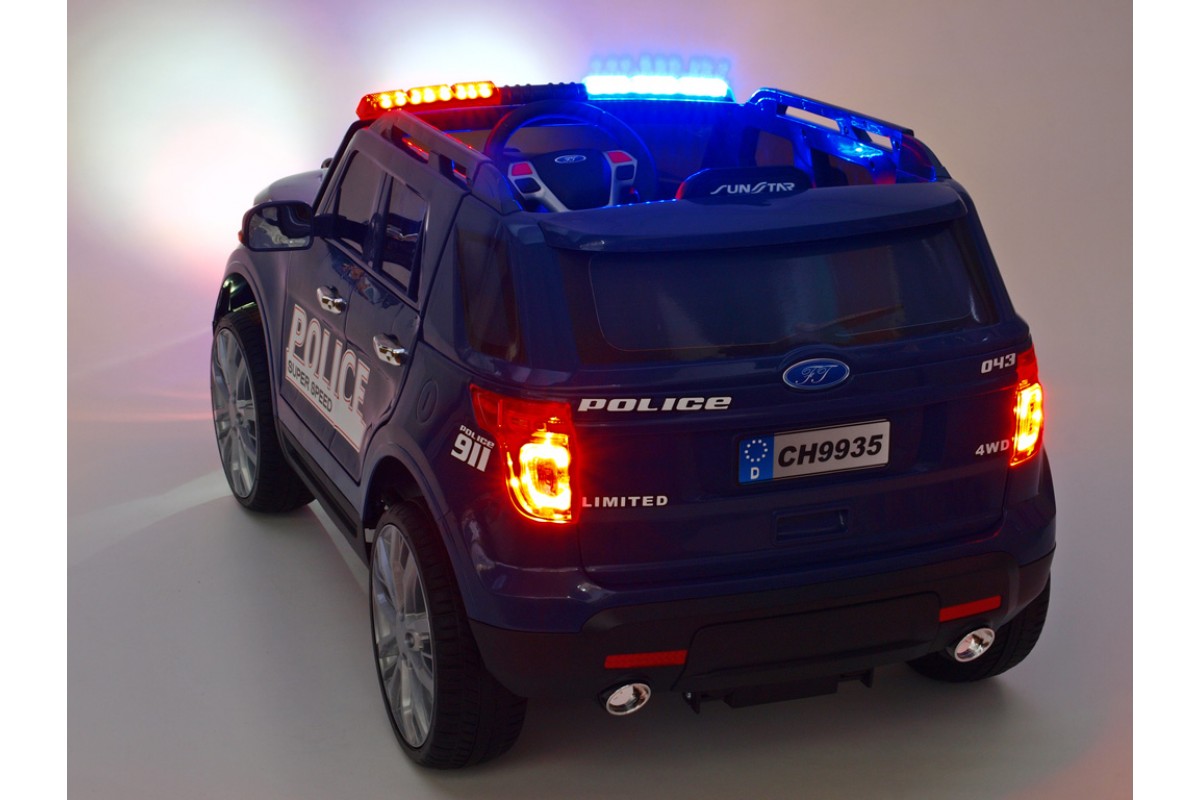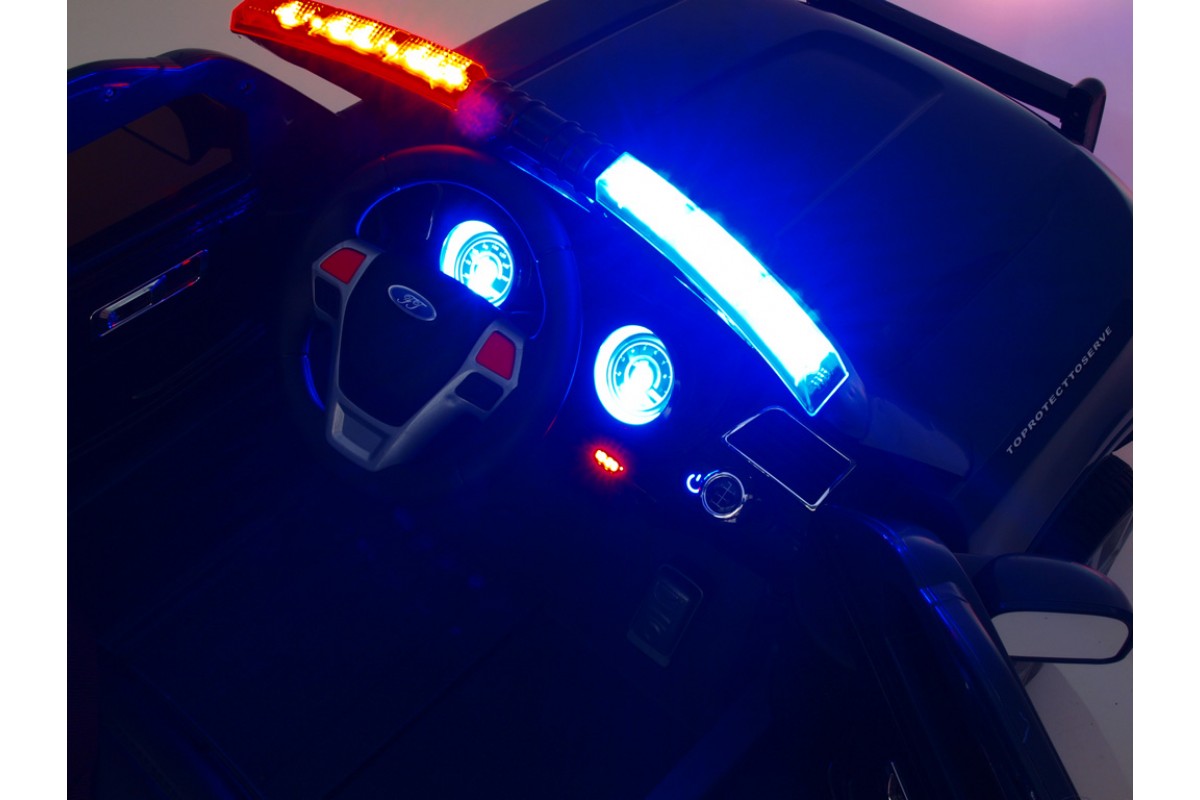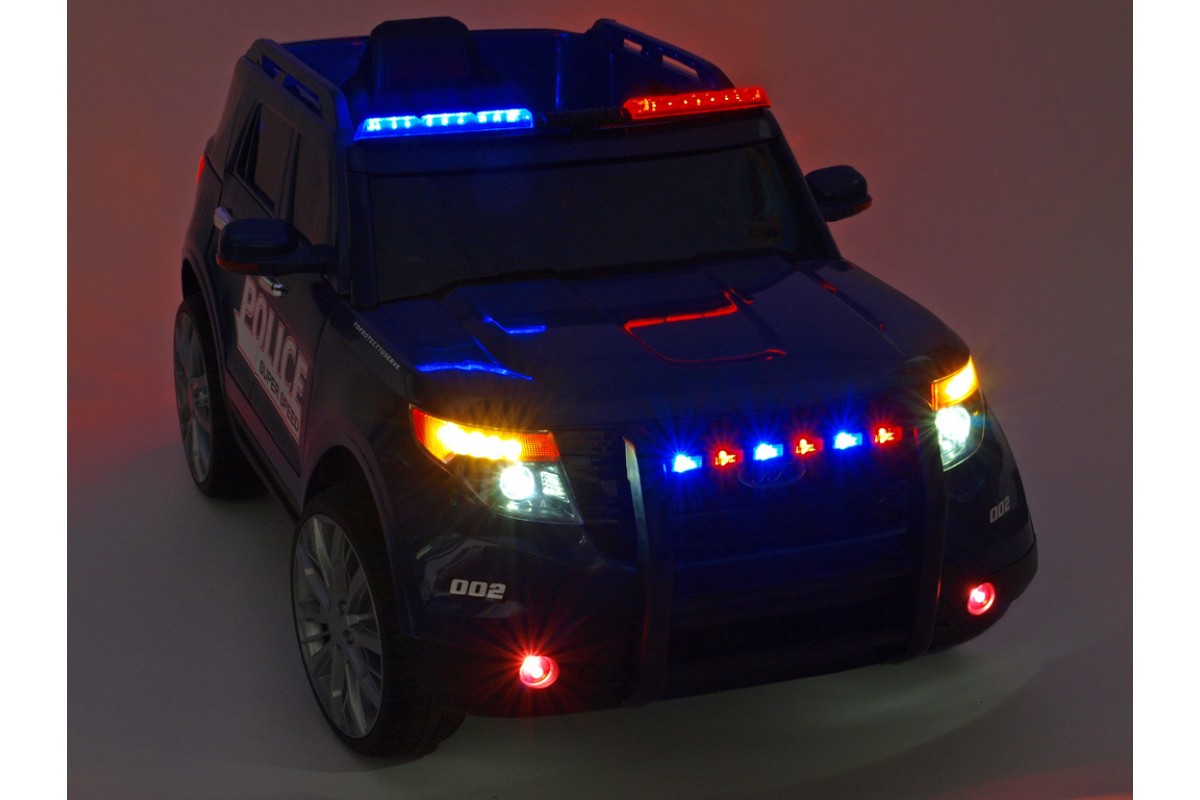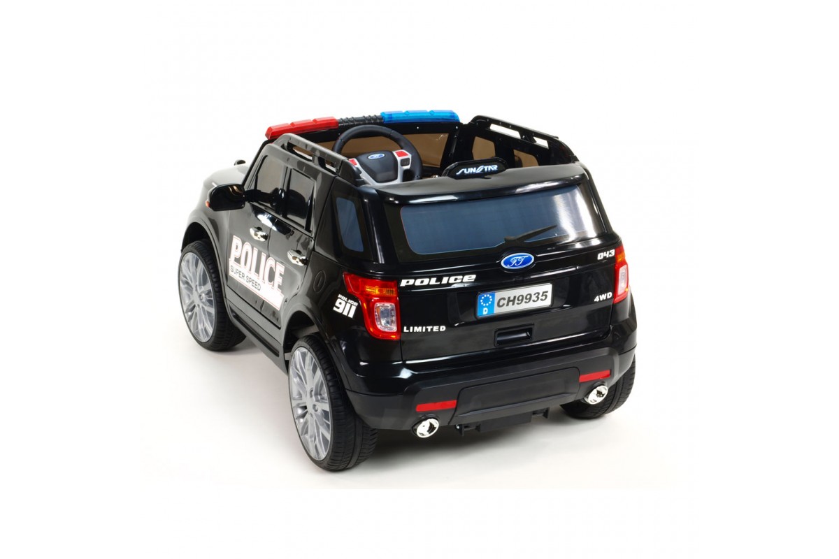 Радиоуправляемый электромобиль Ford Explorer Police Black 12V 2.4G- CH9935 - это полицейский джип непременно понравится юным водителям. Электромобиль Police (CH 9935) выполнен из качественного пластика, оборудован мягким кожаным креслом с ремнем безопасности, широкими резиновыми колесами, горящими фарами, габаритными огнями и сигнальными лампами. Кроме того, в машинке есть действующий громкоговоритель, который обязательно оценит ребенок. В управлении электроджип прост - запуск двигателя с кнопки, две скорости вперед, одна назад. В комплект входит пульт ДУ. Подсвеченная приборная панель, руль с кнопками "клаксон" и "музыка," возможность прослушивать любимые мелодии (выходы для MP3, USB, радио) - здесь продумано все, для увлекательной поездки. А для удобной транспортировки предусмотрена специальная ручка под передним бампером машины. Максимальная нагрузка составляет 35 кг, вес равен 19 кг, возрастная категория 1+.