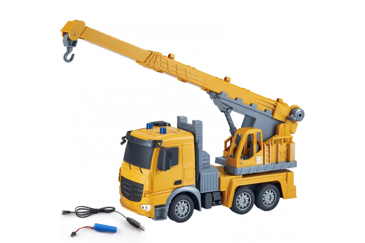 Радиоуправляемый грузовик - кран (свет, звук, масштаб 1:24) - YT55-8 - это автокран, который может двигаться вперед/назад, вправо/влево. Кран может подниматься и опускаться, регулируется высота. Вращение платформы на 360 градусов. Имеется подсветка, автокран издает реалистичные звуки.