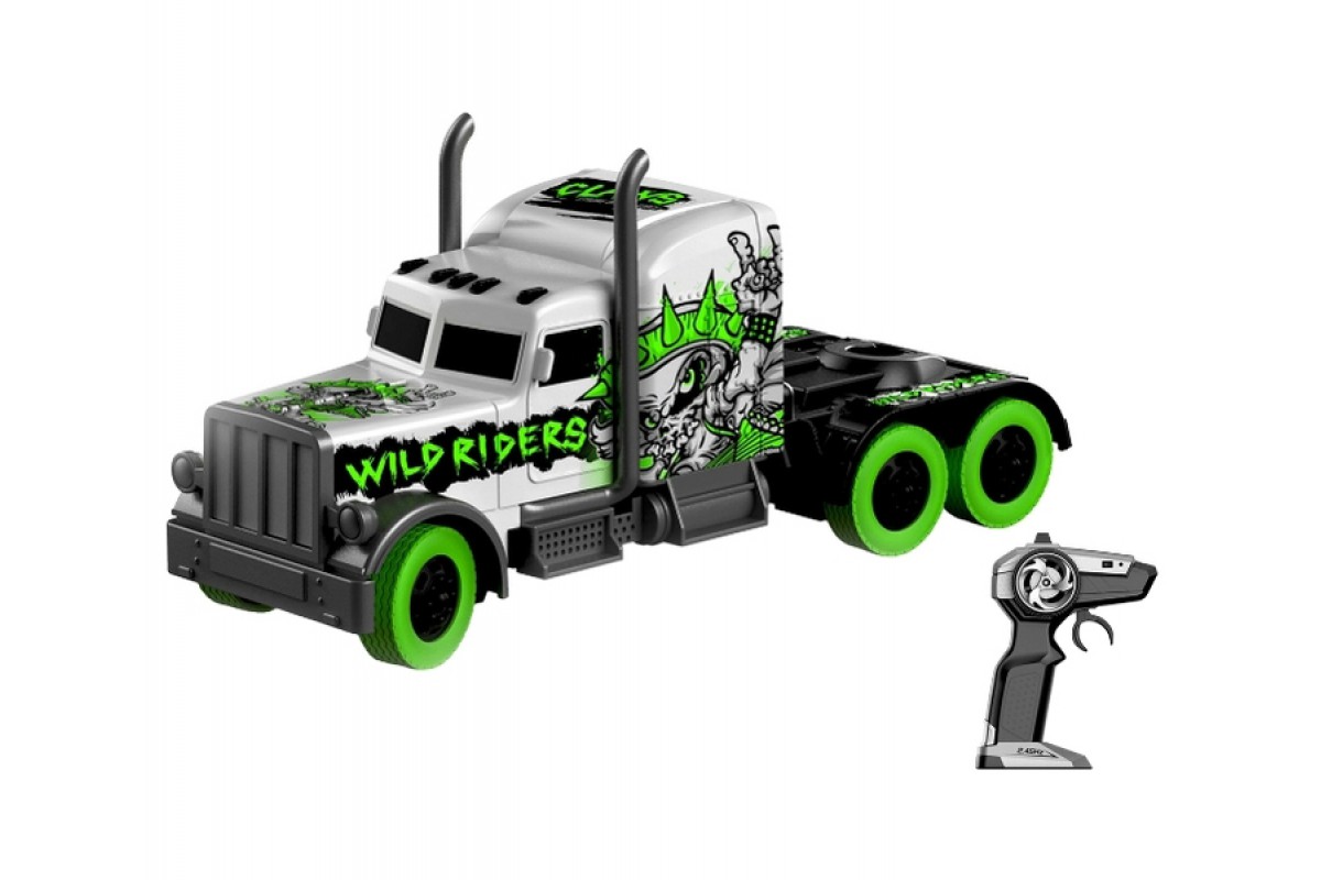 Радиоуправляемый грузовик - тягач WILD RIDERS (2WD, акб, 1:16) - GM1930-GREEN - это тягач на пульте управления в масштабе 1:16. Тягач двигается во всех направлениях: вперед, назад, повороты вправо и влево. Можно присоединить прицеп. Машинка отлично подойдет для игры дома и на улице. Увлекательная игра в машинку не только развлекает ребёнка, но и вырабатывает такие практические качества, как ловкость и слаженность движений рук, сноровку и координацию, развивает мелкую моторику пальцев рук, заставляет подвигаться и пофантазировать.