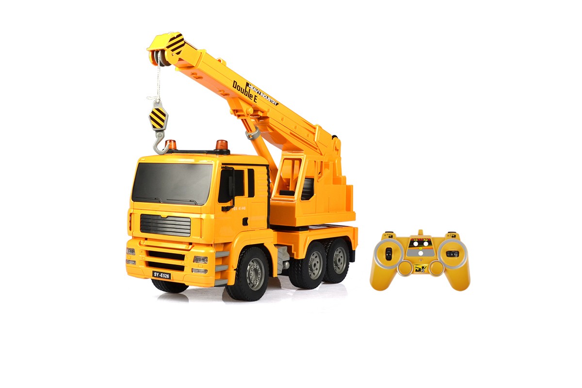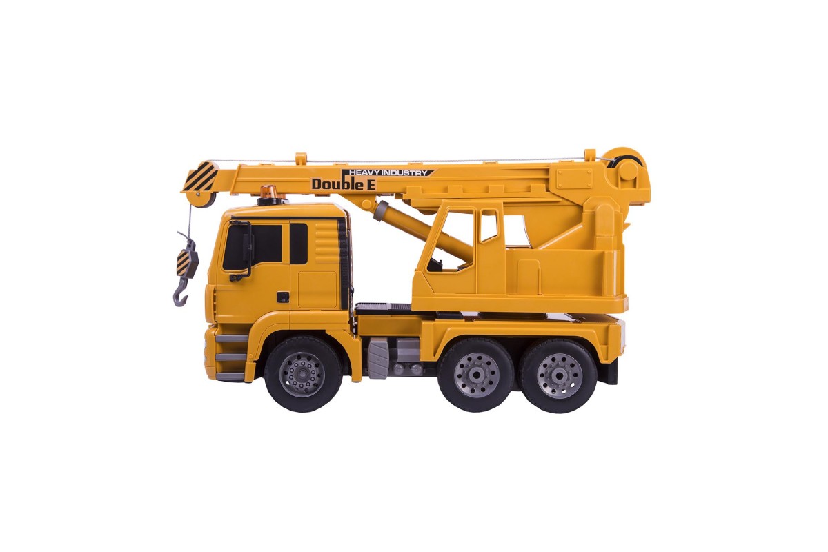 Радиоуправляемый грузовик-кран Double E 1:20 2.4G - E516-003 - это автокран, который может двигаться вперед/назад, вправо/влево. Кран может подниматься и опускаться, регулируется высота. Вращение платформы на 360 градусов. Имеется подсветка, автокран издает реалистичные звуки, также может быть переведен в беззвучный режим.