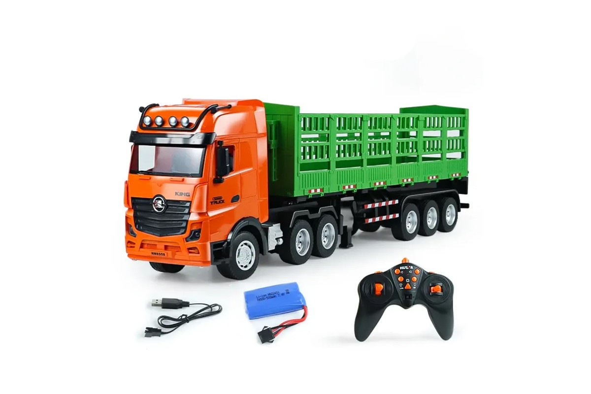 Радиоуправляемый грузовик лесовоз HUINA 1:18 - HN1312 - это полнофункциональная радиоуправляемая машина грузовик с прицепом в масштабе 1/18 со световыми и звуковыми эффектами. Грузовик с прицепом на пульте управления двигается во всех направлениях: вперед, назад, влево, вправо. На прицепе можно перевозить любые грузы. Включение сигнальных маячков сделает игру реалистичной. Нетоксичный пластиковый материал безопасен для ребенка.