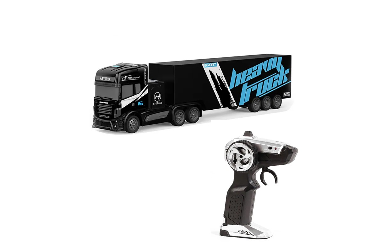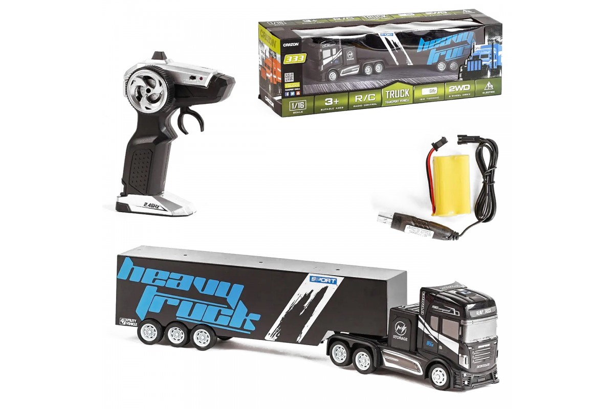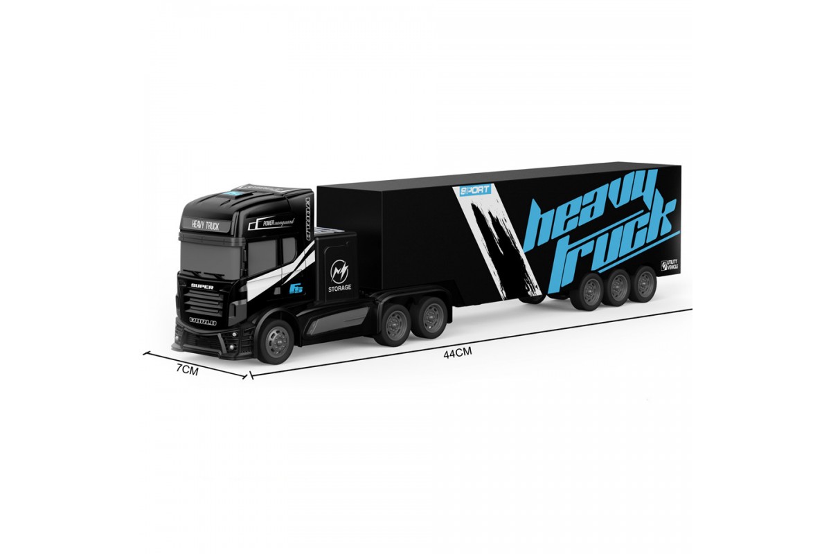 Радиоуправляемый грузовик трейлер (2WD, акб, 1:16) - GM1953 - это грузовой транспорт, специально предназначенный для дальних перевозок. Ведь грузовой тягач можно отправить в другой город или даже заграницу, например, в соседнюю игрушечную страну! Какие приключения ждут эту машинку – об этом знает только ее юный владелец. Ребенок оценит по достоинству высокую детализацию и реалистичность модели. Ведь трейлер отличается от настоящего как бы размером. Тягач имеет классический тип кузова, окрашенный в матовый черный цвет, а сзади расположен большой грузовой прицеп для разнообразного товара.