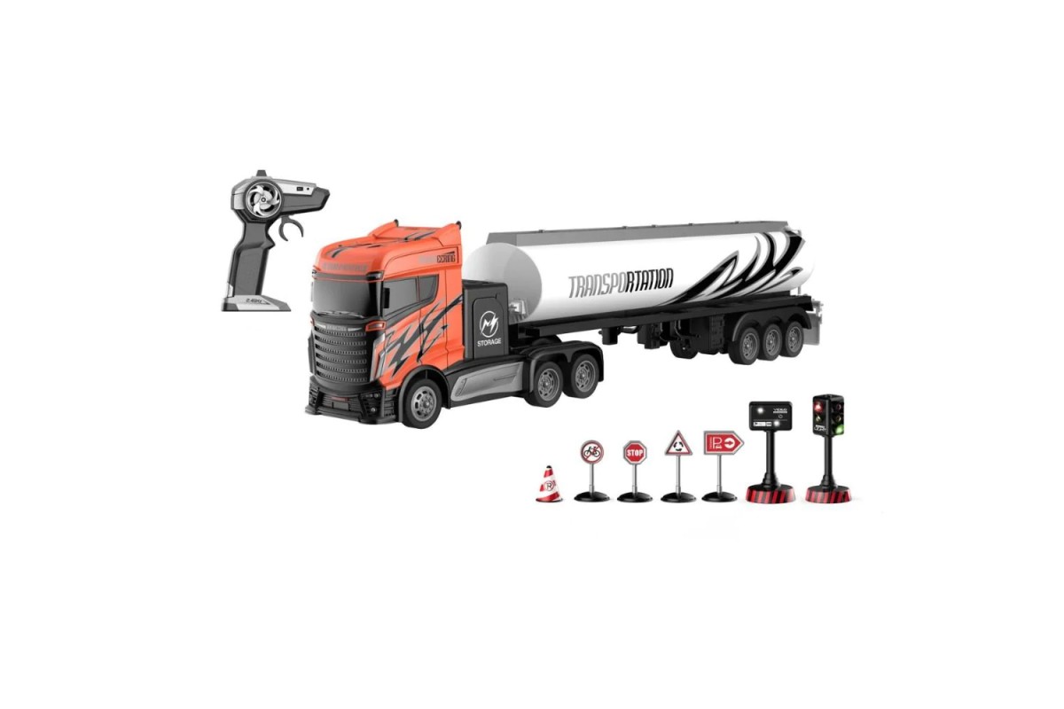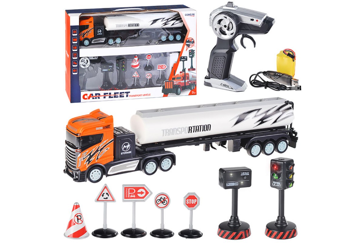 Радиоуправляемый грузовик цистерна и набор дорожных знаков (2WD, акб, 1:16) - GM1927 - это отличный подарок для вашего ребенка, который с легкостью придумает огромное количество увлекательных сюжетов для своих игр. Представленная машина выполнена в масштабе 1:16. Современная модель состоит из специального прицепа (цистерна) и тягача.