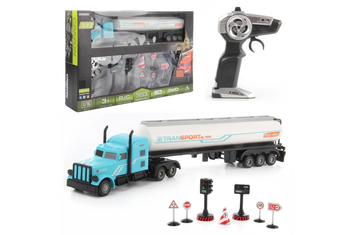 Радиоуправляемый грузовик цистерна и набор дорожных знаков (2WD, акб, 1:16) - GM1935 - это отличный подарок для вашего ребенка, который с легкостью придумает огромное количество увлекательных сюжетов для своих игр. Представленная машина выполнена в масштабе 1:16. Современная модель состоит из специального прицепа (цистерна) и тягача.