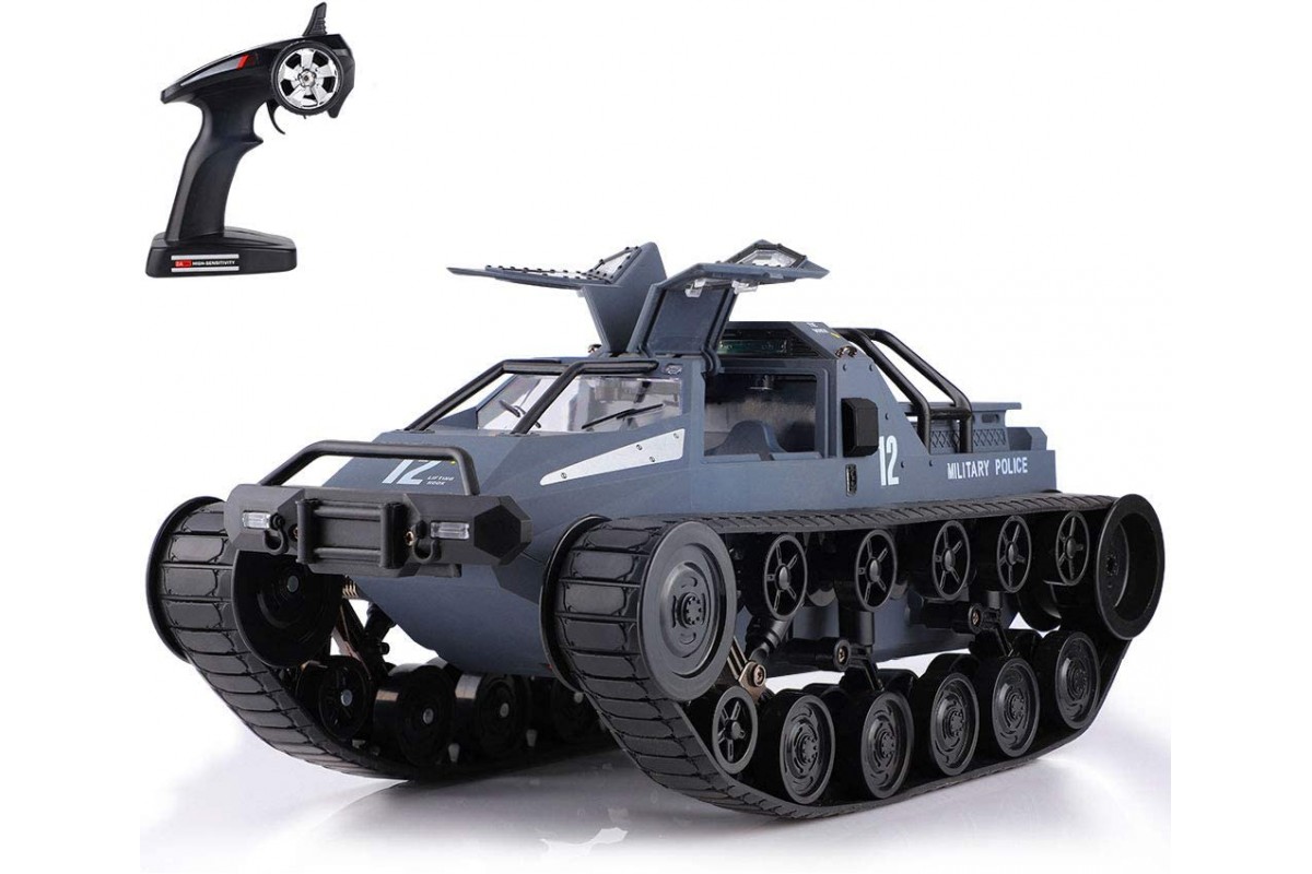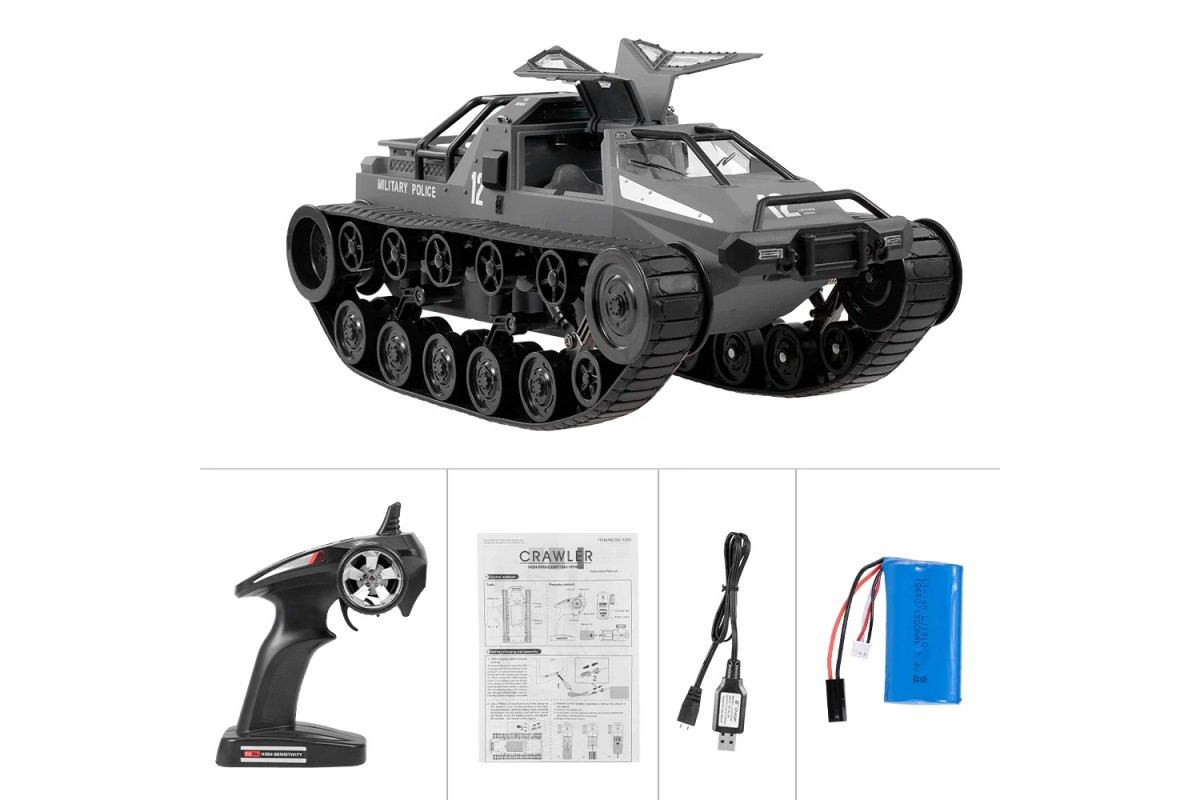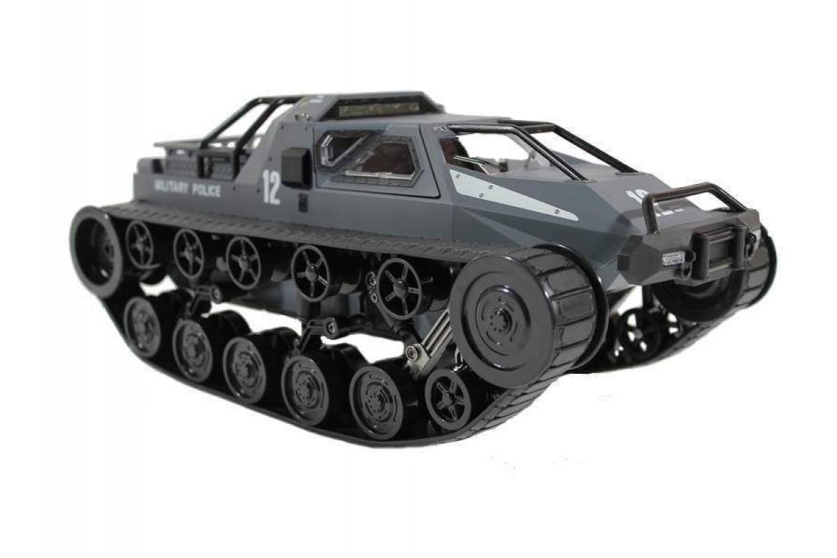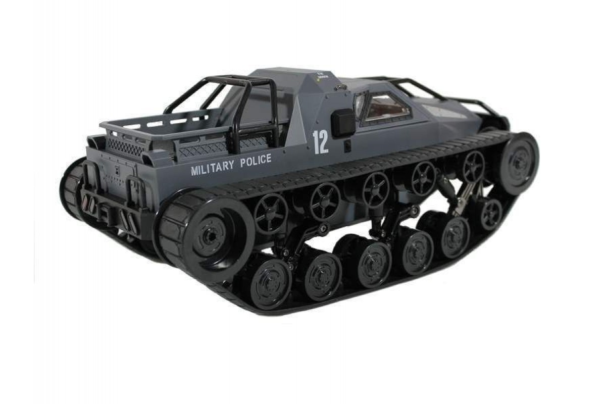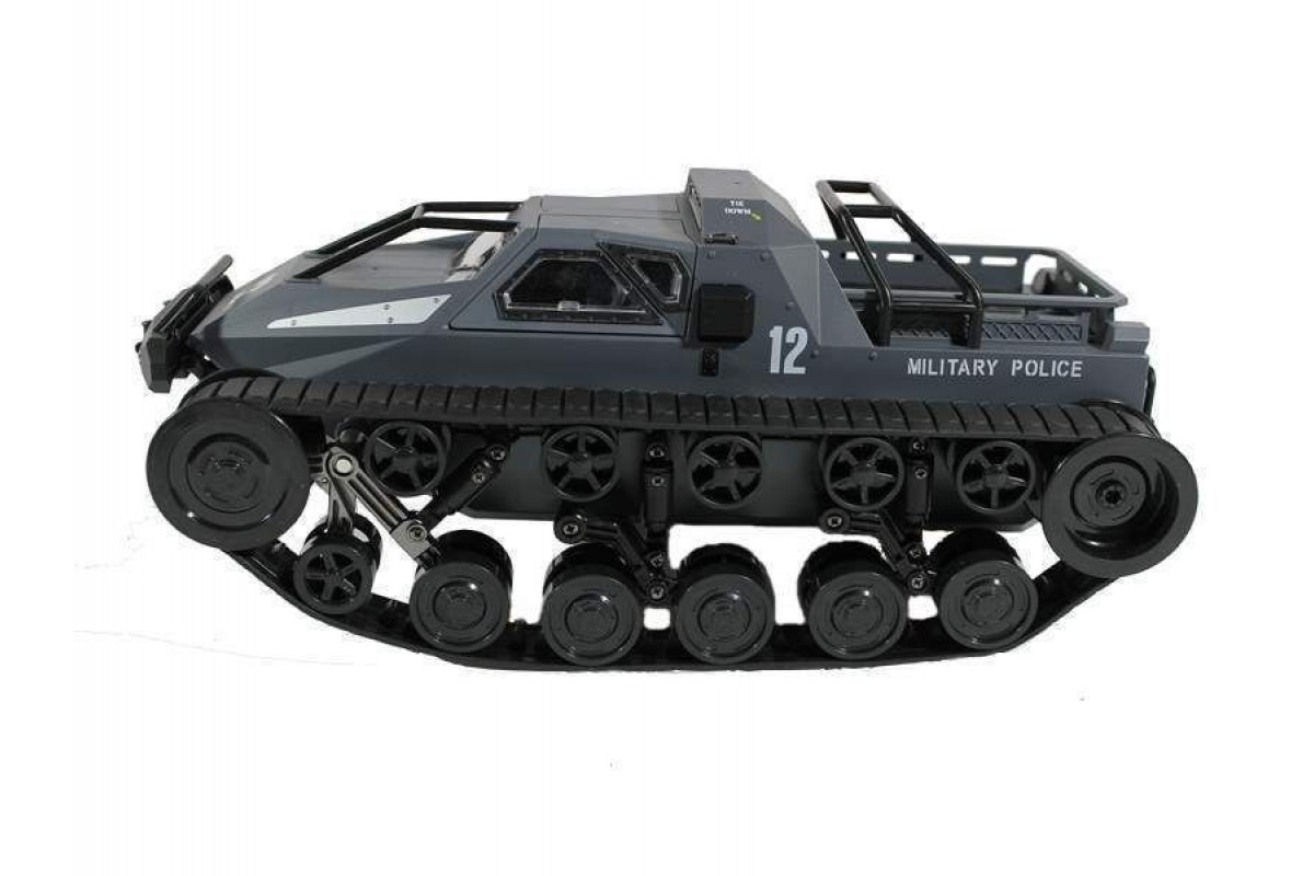 Радиоуправляемый гусеничный серый вездеход 1:12 2.4G - G2061 - это универсальный автомобиль, отличающийся высокими показателями проходимости трассы, проложенной на пересеченной местности. Автомобиль имеет детализированную кабину, усиленную раму жесткости, открываются двери. Движется при помощи 2 довольно больших гусениц с глубоким рисунком протектора.