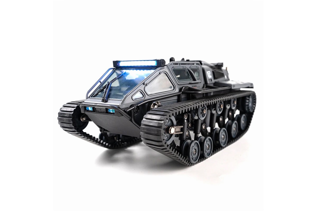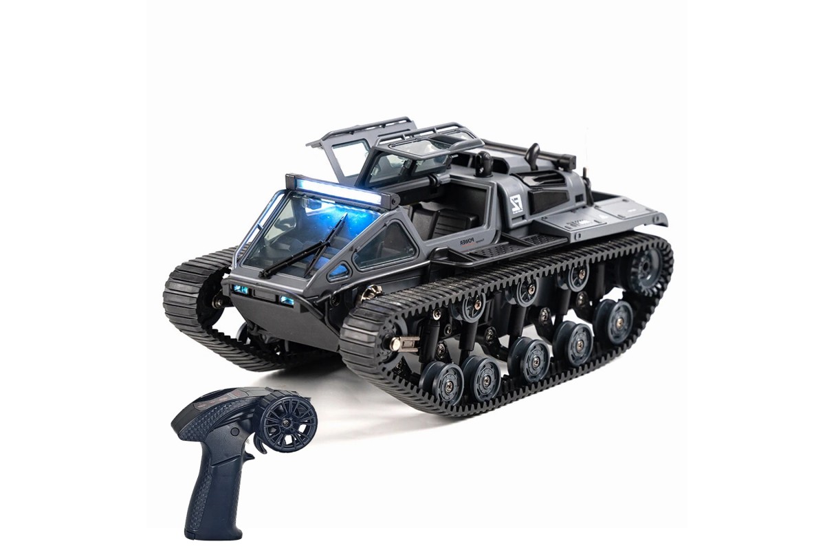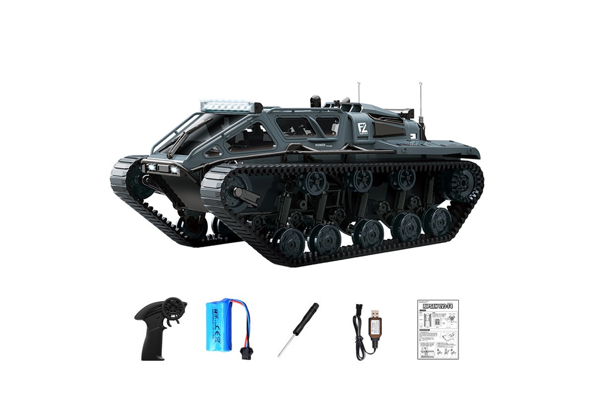 Радиоуправляемый гусеничный вездеход RIPSAW EV3-F4 1:16 - G2067-GREY - это универсальный автомобиль, отличающийся высокими показателями проходимости трассы, проложенной на пересеченной местности. Автомобиль имеет детализированную кабину, усиленную раму жесткости, открываются двери. Движется при помощи 2 довольно больших гусениц с глубоким рисунком протектора.