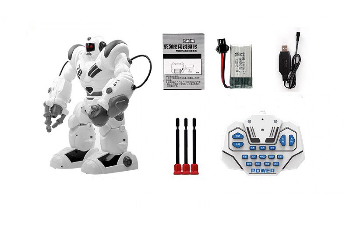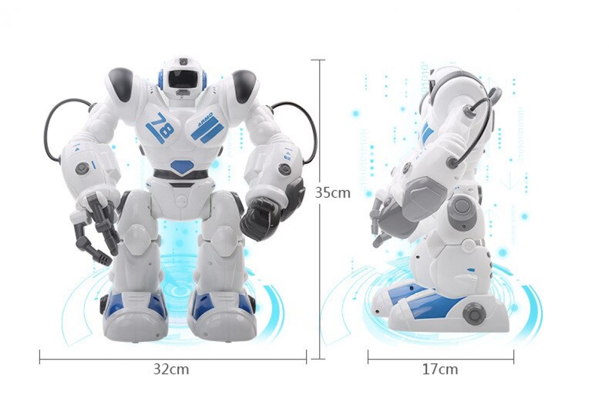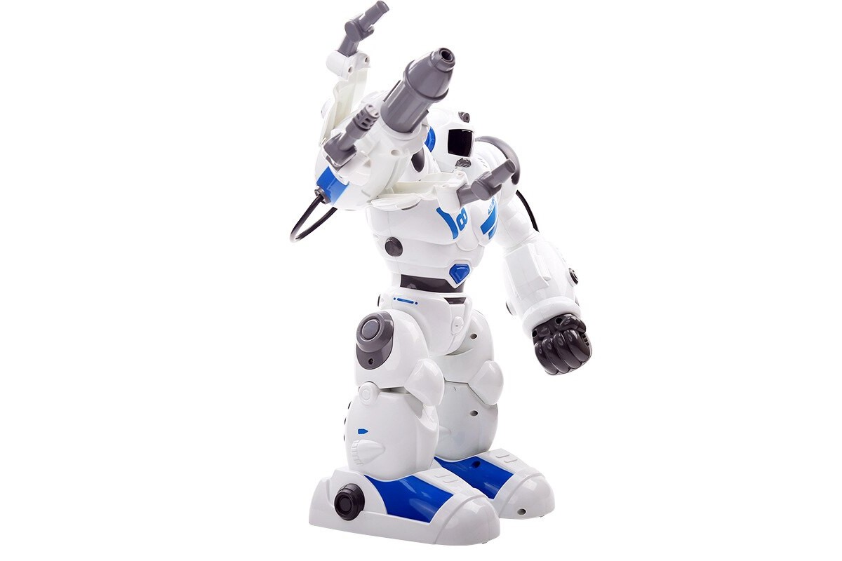 Радиоуправляемый интеллектуальный робот Jia Qi Roboactor - ТТ353 - это радиоуправляемый робот. Он умеет ходить, поворачиваться, танцевать, стрелять пульками, бросать и поднимать предметы, даже умеет спать, может брать в руки кружку или отвертку. Производитель запрограммировал в модель различные комбинации движений. Управлять таким роботом очень просто, для этого в комплекте есть функциональный пульт дистанционного управления.
