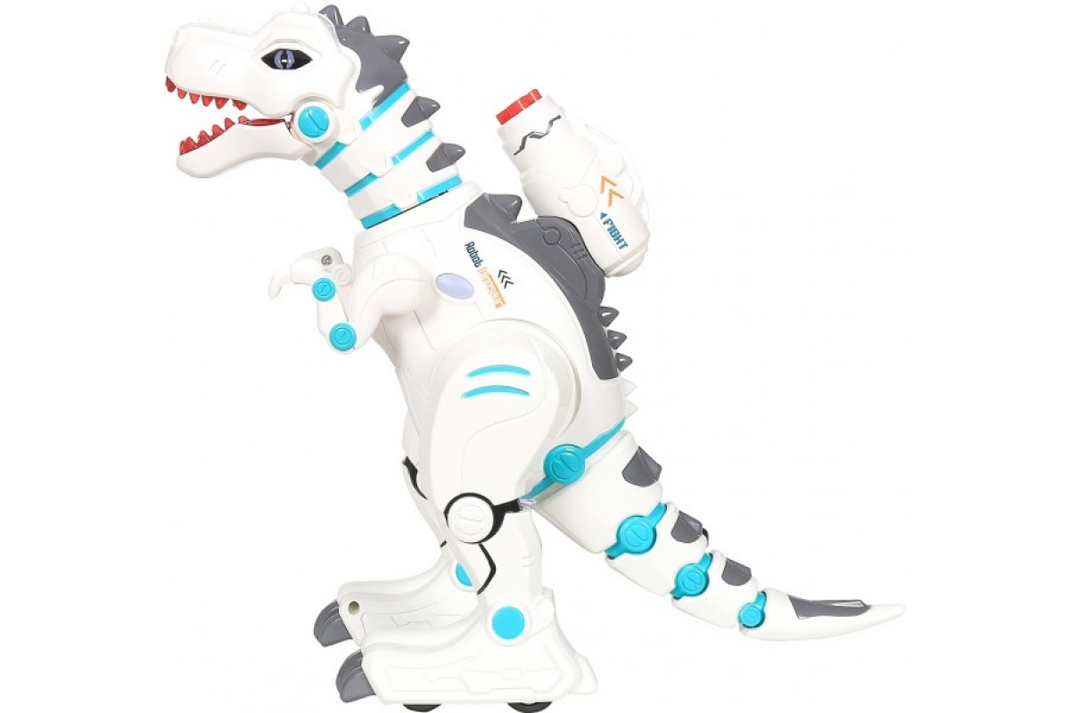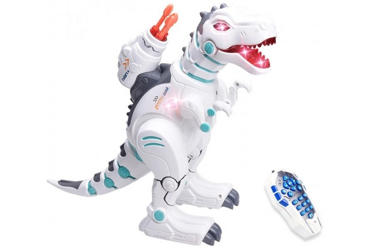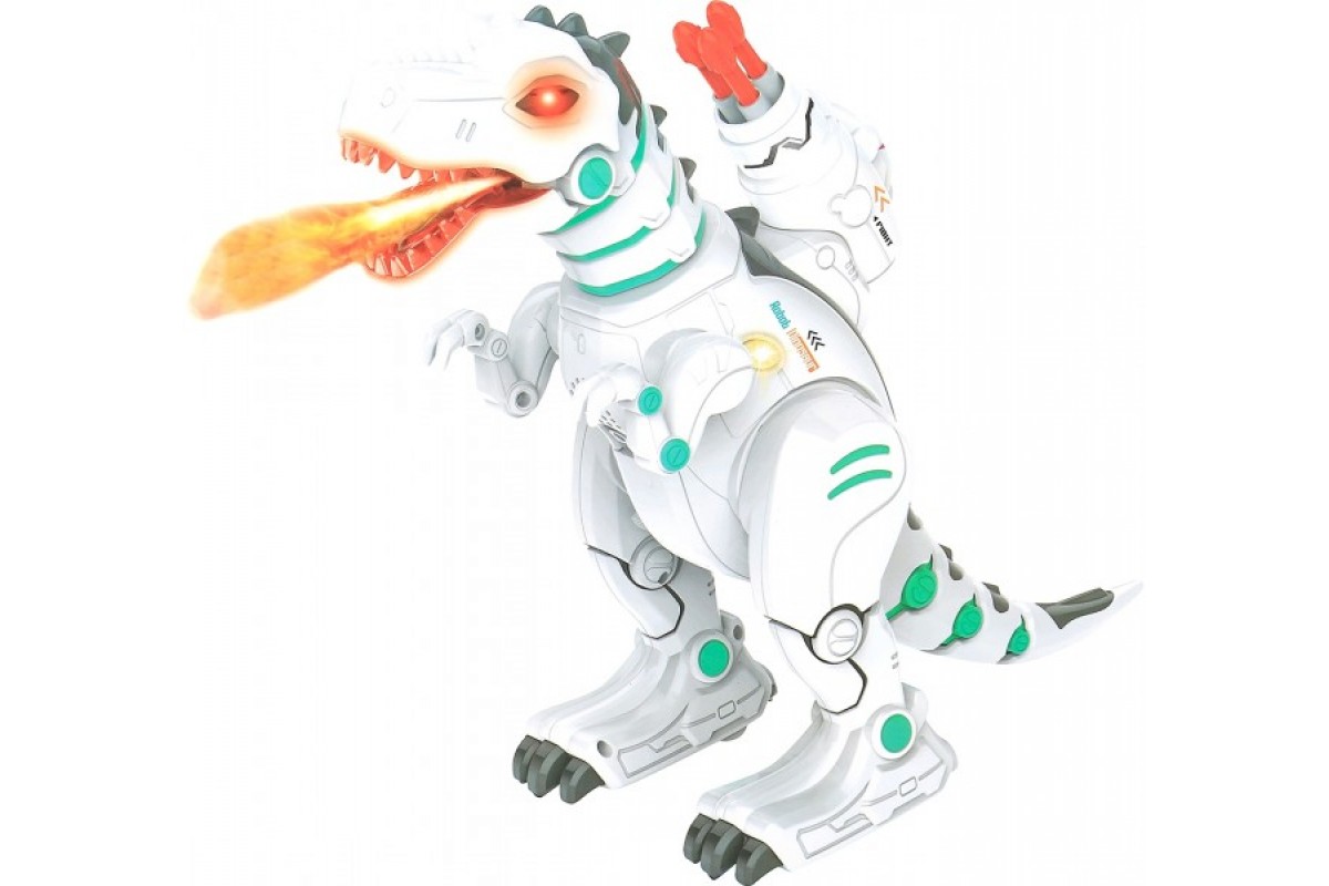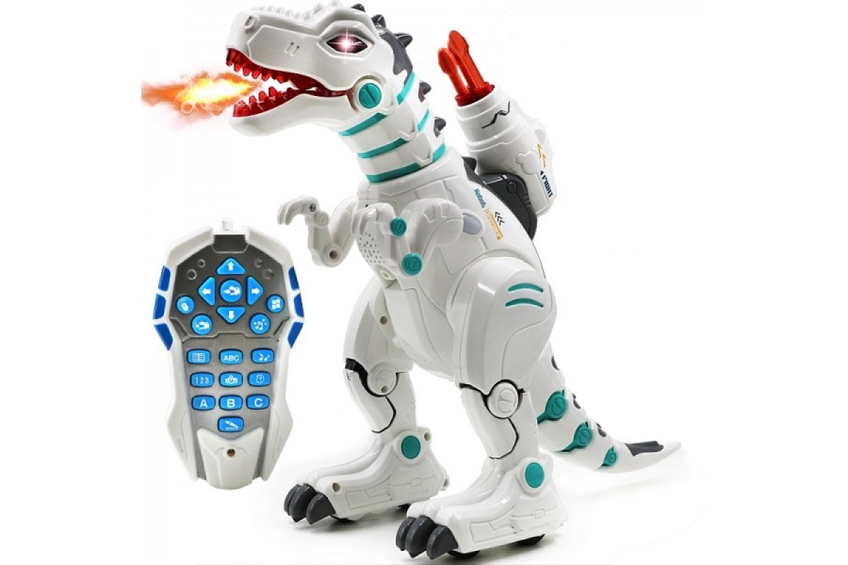 Радиоуправляемый интерактивный динозавр, стреляет ракетами + дышит паром - ZYB-B2981 - это динозавр, который может: ходить в нескольких режимах, разворачиваться в обе стороны, стрелять присосками, танцевать( робот двигается, стреляет, рычит под набор песен), запоминать команды, а потом их выполнять. И последнее и самое главное : робот выпускает пар изо рта. Пар в свою очередь подсвечивается лампочками, что создаёт эффект огня.