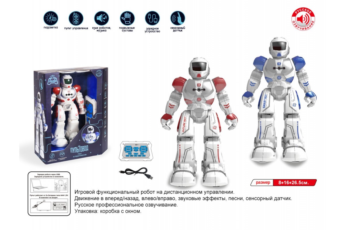 Радиоуправляемый интерактивный робот 26 см - ZYA-A2746 - это потрясающий многофункциональный радиоуправляемый робот Future Bot может ходить, танцевать и запоминать до 50 команд. Оснащен сенсорным датчиком. Игрушка полностью русифицирована и имеет обширный словарный запас. Встроенный аккумулятор заряжается по USB кабелю от компьютера. Робот качественный и произведен из безопасных материалов