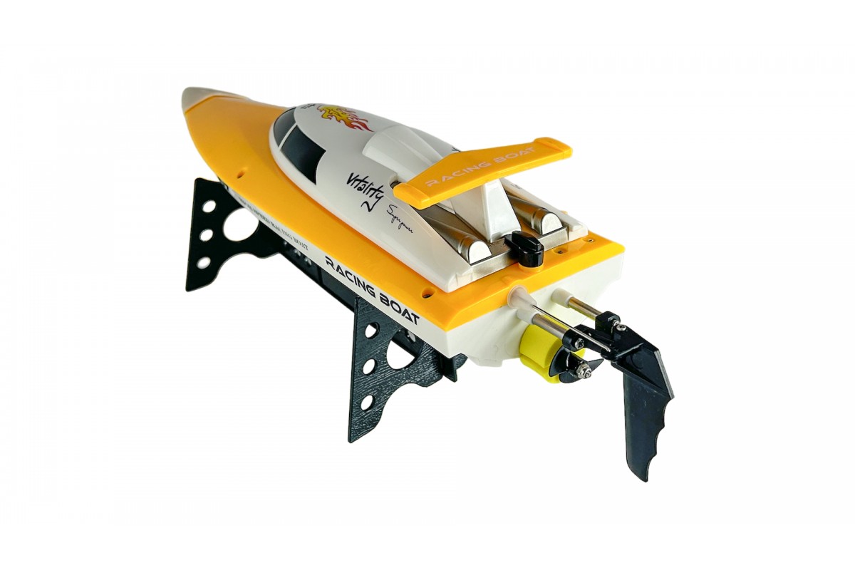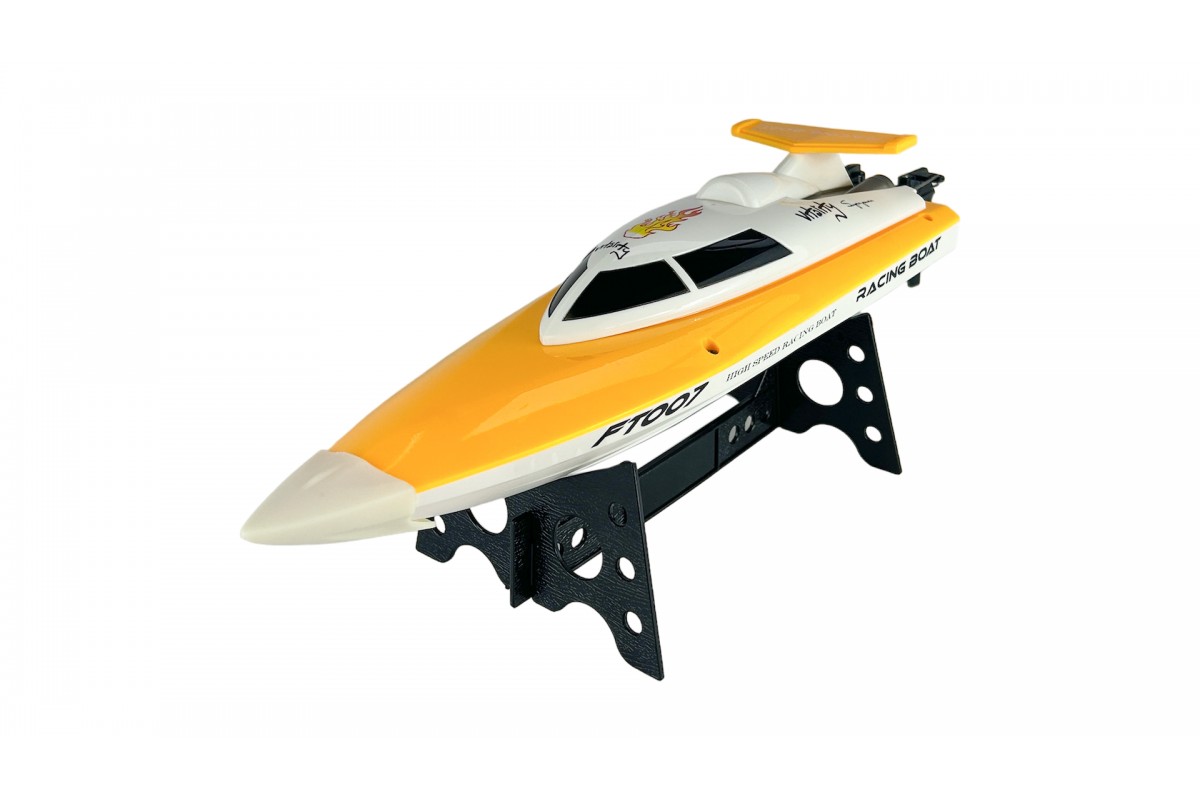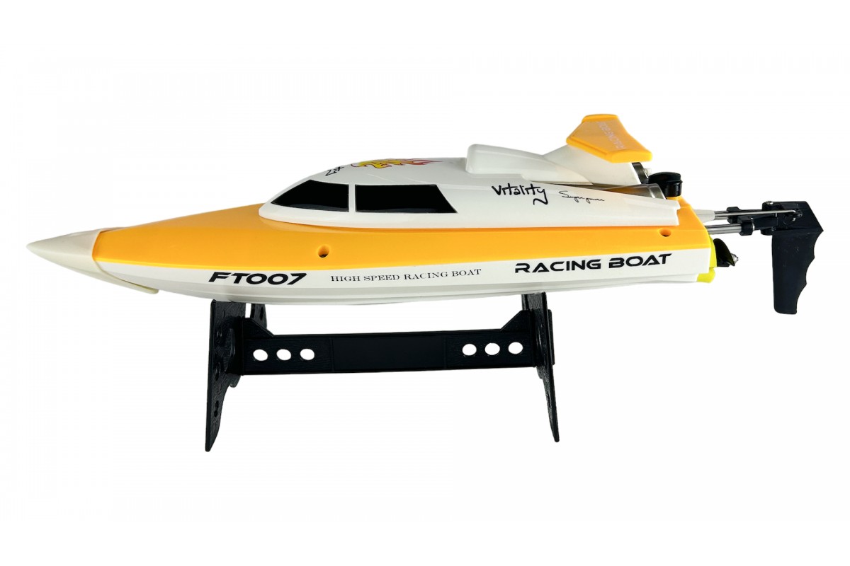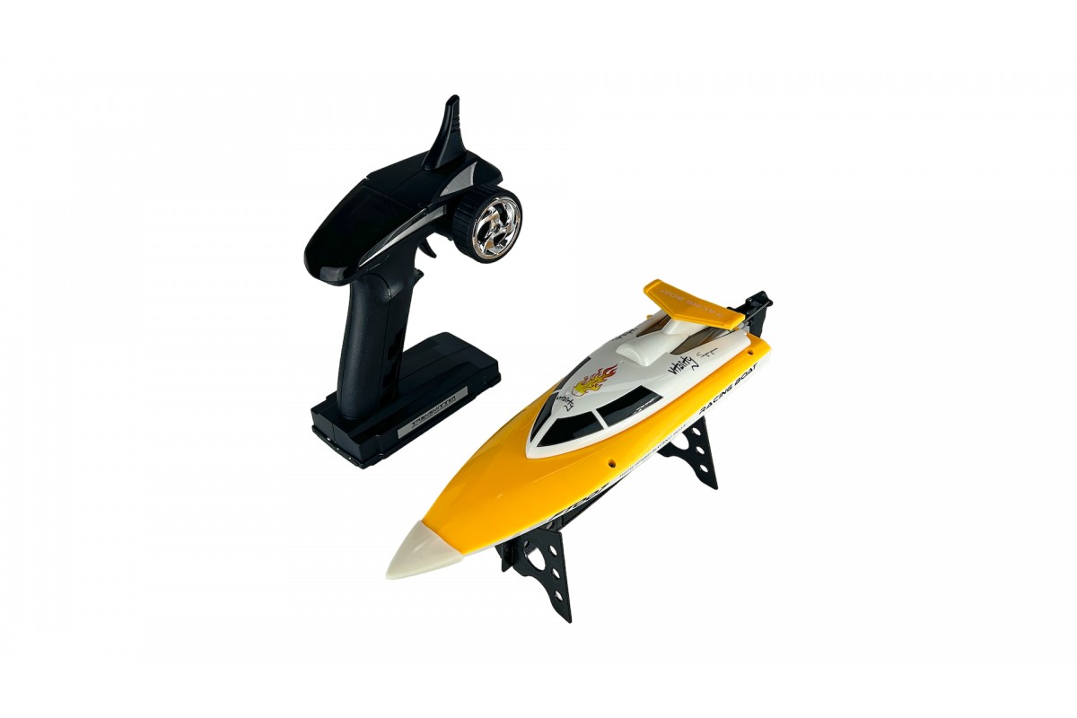 Комплектация: Собранная модель катера, пульт управления 2.4 ГГц, элемент питания для пульта управления, аккумулятор Li-Ion AA 7.4В/700 мАh, зарядное устройство, подставка для катера.