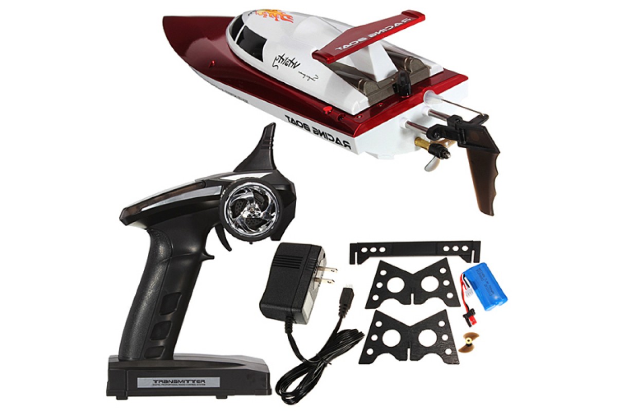 - Комплектация:Готов к использованию, Радиоуправляемый катер Fei Lun, аккумулятор Li-Ion 7,4B 700 mAh, зарядное устройство + сетевой адаптерб пульт управления 2.4G (требуется 6 батареек типа АА), инструкция для пользователя, стойка для лодки.