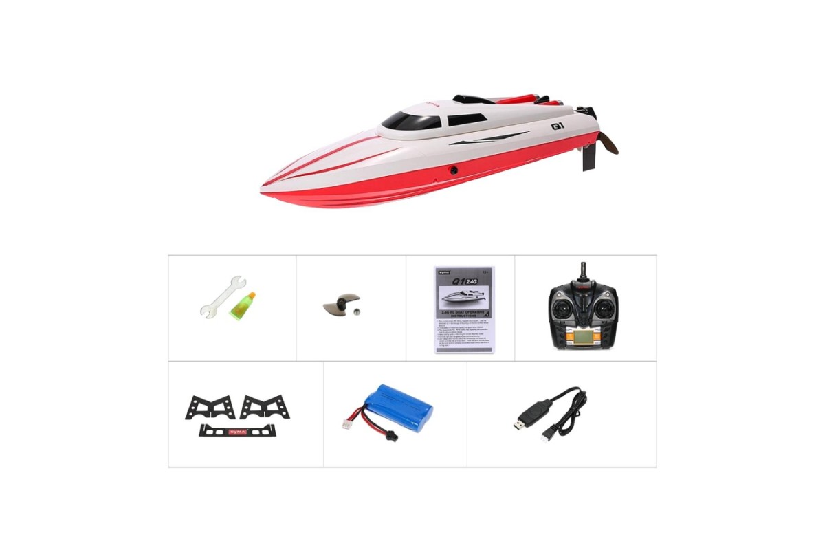Радиоуправляемый катер Syma Q1 Speedboat RTR 2.4G - SYMA-Q1 отлично подходит для использования на озерах, прудах и других открытых водоемах. Катер способен развивать скорость до 30 км/ч. Легок в управлении и позволяет двигаться не только влево-вправо и вперед-назад, но и совершать автоопрокидывание (кувырок на на 1800).