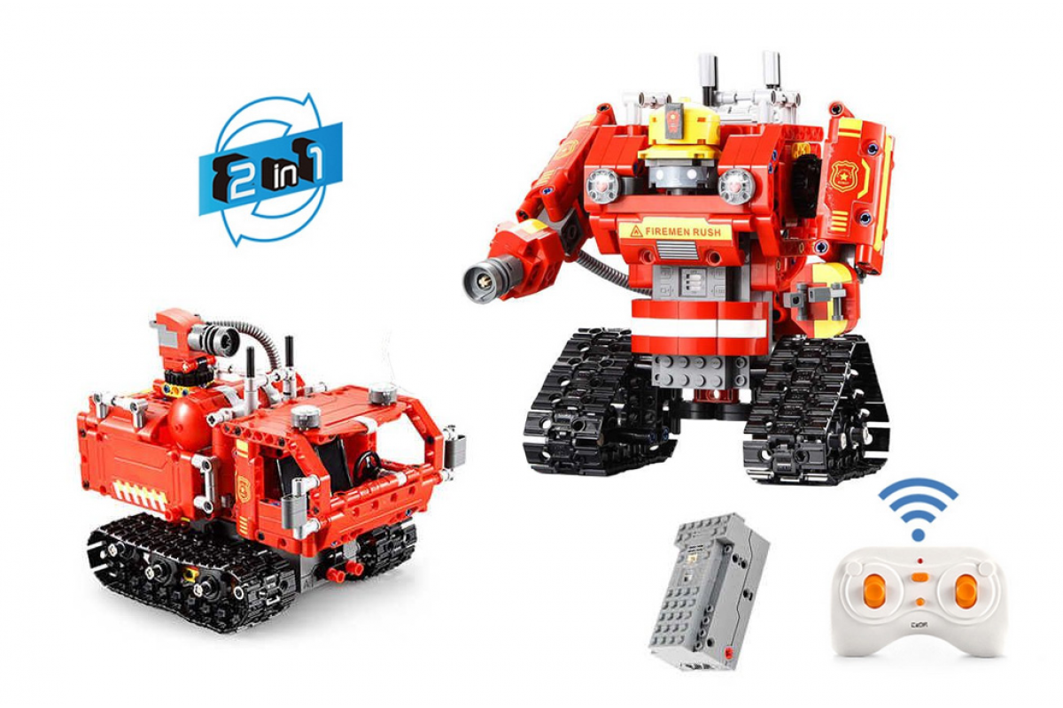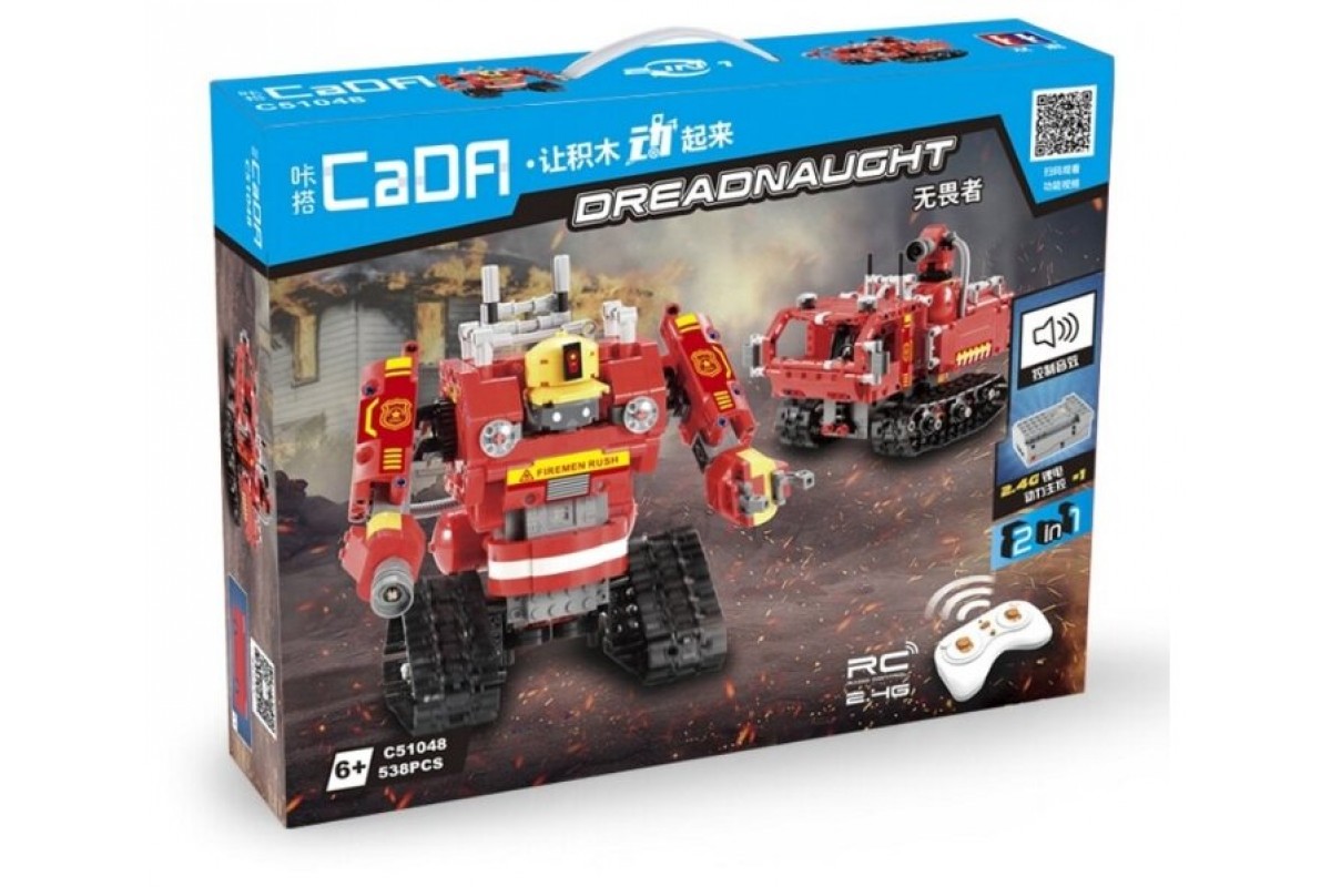 Радиоуправляемый конструктор CADA 2 в 1 пожарный робот-трансформер (538 деталей) - C51048W представляет собой набор 2 в 1 для постройки робота и пожарной машины на радиоуправлении и содержит 538 деталей! Робот-пожарный CaDa С51048W в собранном виде очень подвижный и маневренный, так же вращается голова и руки робота. Второй вариант сборки - пожарная машина. Помимо деталей корпуса и колес, в комплект входят 2 электродвигателя, приемник, аккумулятор 3.7В и все в одном блоке, и пульт! Детали в наборе отлично подогнаны друг к другу, поэтому сборка не вызовет трудностей, а собранная модель не развалится во время игры.