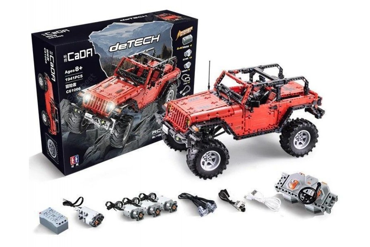 Радиоуправляемый конструктор CADA deTech Jeep Wrangler (1941 деталь) - C61006W представляет собой набор для постройки джипа на радиоуправлении и содержит 1941 деталь! Детали в наборе отлично подогнаны друг к другу, поэтому сборка не вызовет трудностей, а собранная машинка не развалится во время игры. У собранной модели открываются двери передние и задние и борт кузова!