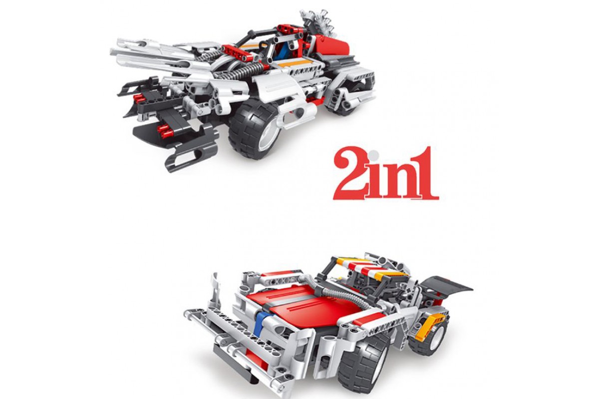 - В набор конструктора входят детали для сборки 1 из 2 автомобилей