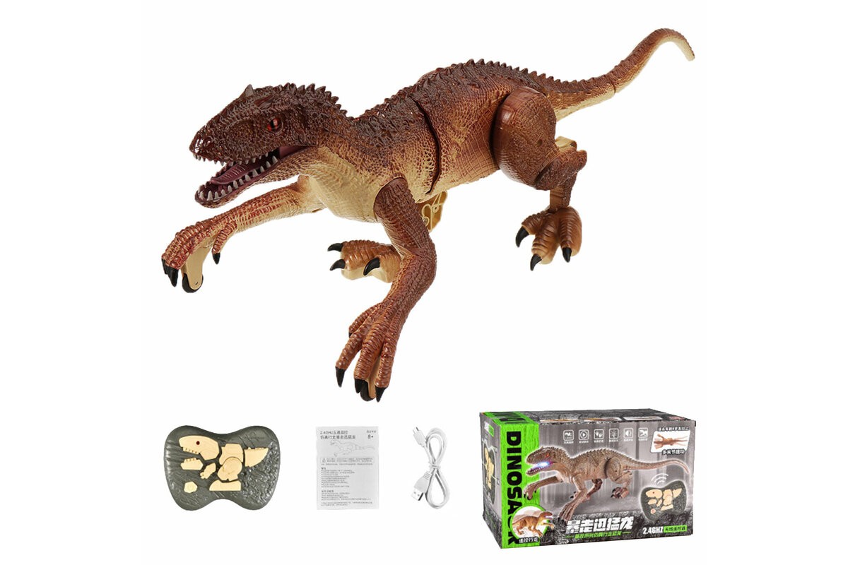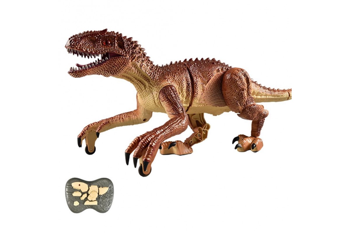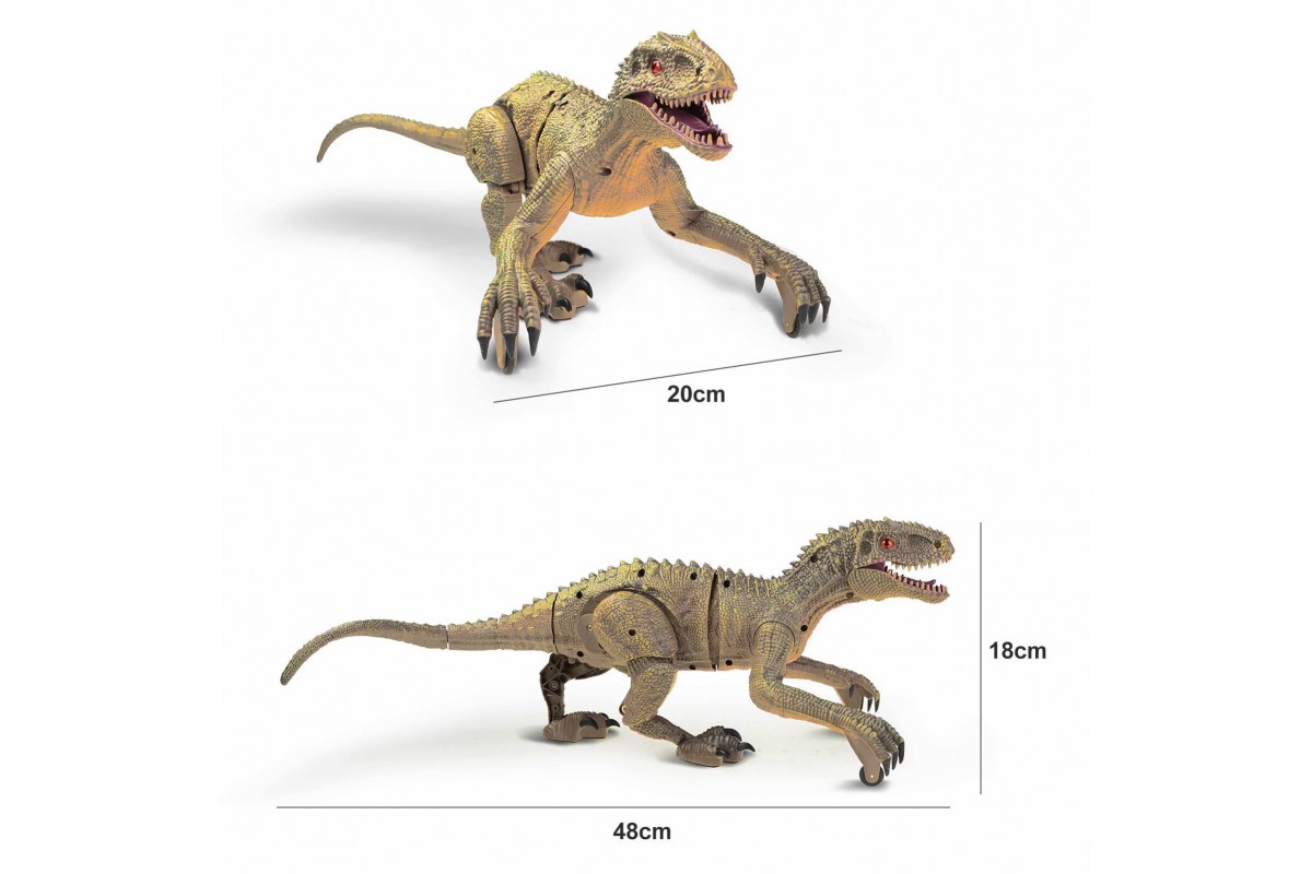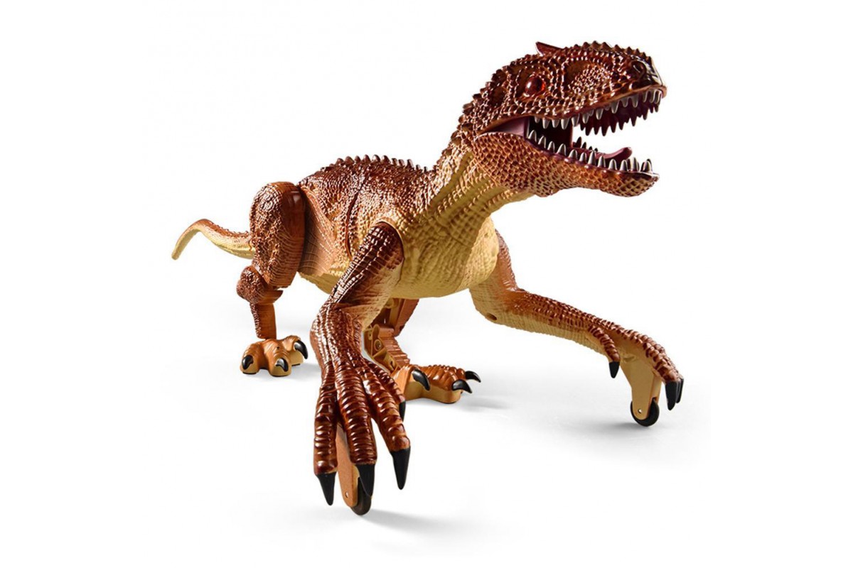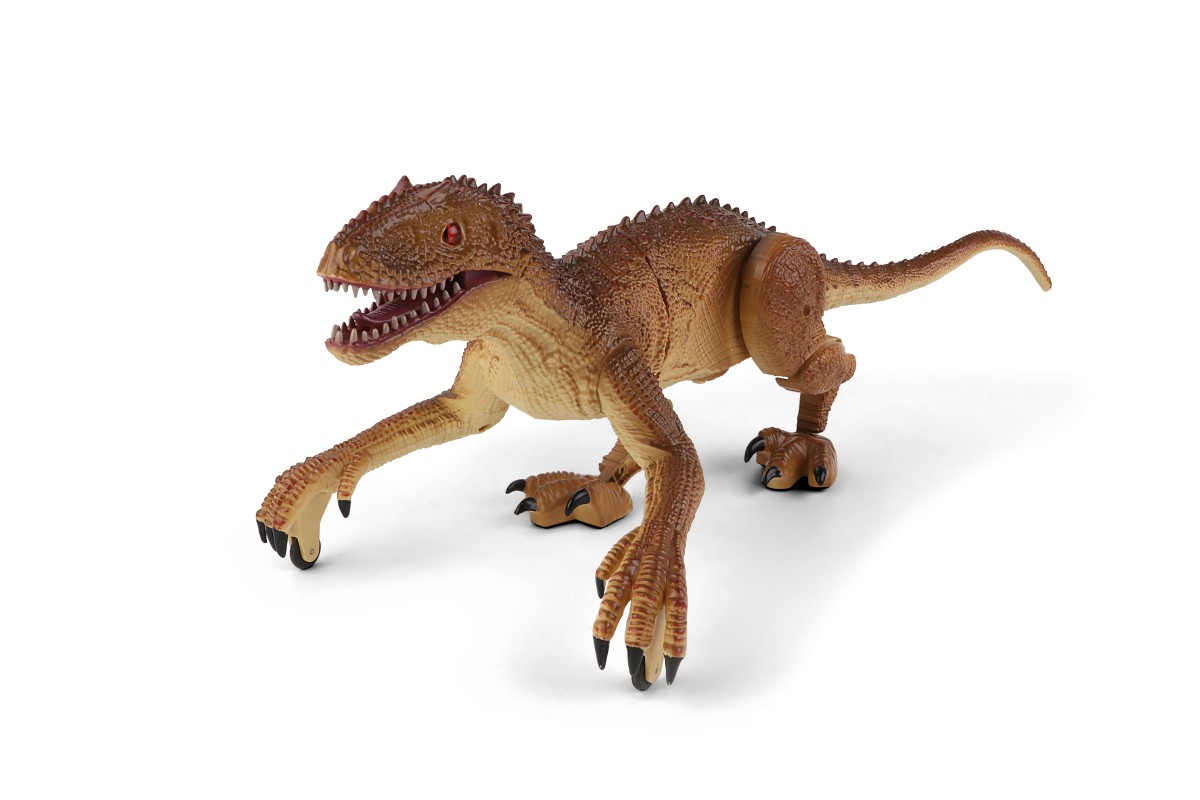 Такого питомца на радиоуправлении можно приютить у себя. Он может двигаться вперед и назад, поворачивать вправо, влево и при движении реалистично изгибается тело и шевелится хвост. Благодаря колесикам, установленным на передних конечностях, динозавр имеет дополнительные точки опоры и поэтому очень устойчив. Подсветка пасти в темноте выглядит зловеще и придает динозавру реалистичности. Кроме того, динозавр издает реалистичные звуки.