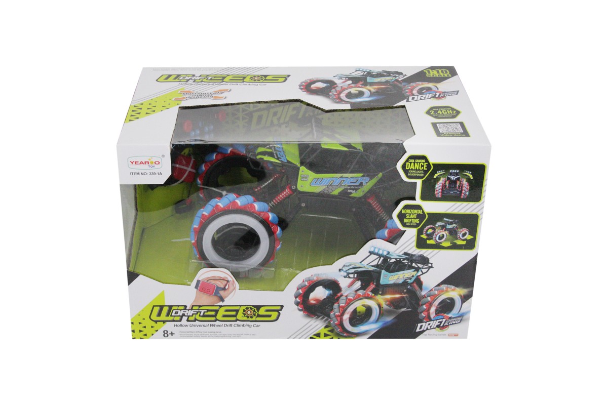 Радиоуправляемый краулер для дрифта Yearoo (часы + пульт) 1:10 - 339-1A-GREEN - это машинка краулер Winner Drift Wheels, которая является несомненным хитом продаж среди радиоуправляемых моделей. О такой машинке мечтает каждый мальчик. Возможности машинки Winner Drift Wheels просто невероятны. Она может ездить, крутиться на месте и ехать дальше, приподниматься и даже танцевать. Но главная особенность заключается в управлении и уникальных колесах с яркой светодиодной подсветкой. Данной машинкой можно управлять жестами при помощи специального браслета, который входит в комплект с машинкой Winner Drift Wheels. Увлекательный процесс управления понравится не только детям, но и взрослым. И все это будет сопровождаться звуками работающего мотора, яркой подсветкой колес и песнями. Особенно эффектно машинка смотрится в темноте.