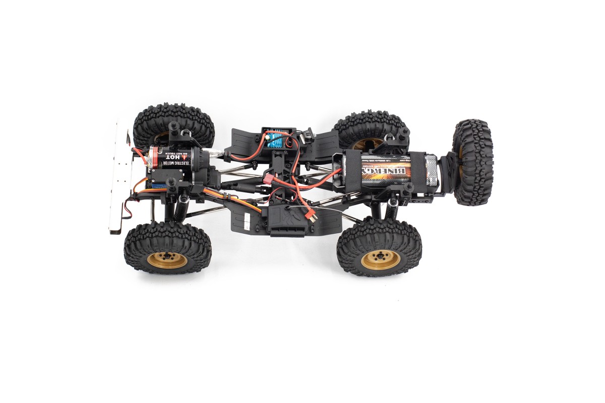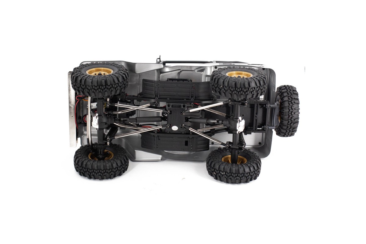 Внедорожник подготовлен для эксплуатации в сложных условиях. Электронный регулятор скорости с влагозащитой, сервопривод рулевого управления с защитой от воды и песка, карданный постоянный полный привод 4WD с дифференциалами из металла, кардан и крестовины из нейлонового композита, защита трансмиссии от попадания песка и камней. Тяги выполнены из анодированного алюминия, а жесткость рамы достигается применением элементов из металлического сплава.