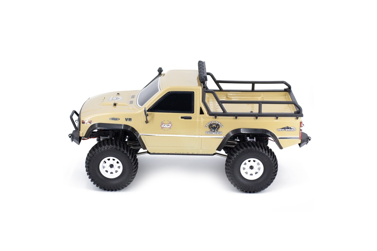 Радиоуправляемый краулер HSP RGT Pioneer 4WD 1:10 - EX86110-P86200-3T - это внедорожник на радиоуправлении от компании RGT с колесной формулой 4WD, который поставляется в полностью готовом к использованию состоянии. Автомобиль изготовлен в масштабе 1:10, фары имеют свтодиодную подсветку. Команда RGT в течение многих лет занималась исследованиями и разработками гусеничных радиоуправляемых машин и пыталась сократить дистанцию между радиоуправляемой моделью и широкой публикой, а также предоставить более экономически эффективные радиоуправляемые продукты для широкой публики. Транспортное средство оснащено шарикоподшипником, стальной направляющей шасси C-типа, заблокированным валом спереди и настоящим дифференциалом. Благодаря большому углу тяги и высокоточному CVA новый рулевой рычаг может достигать максимального угла поворота - 42 град.