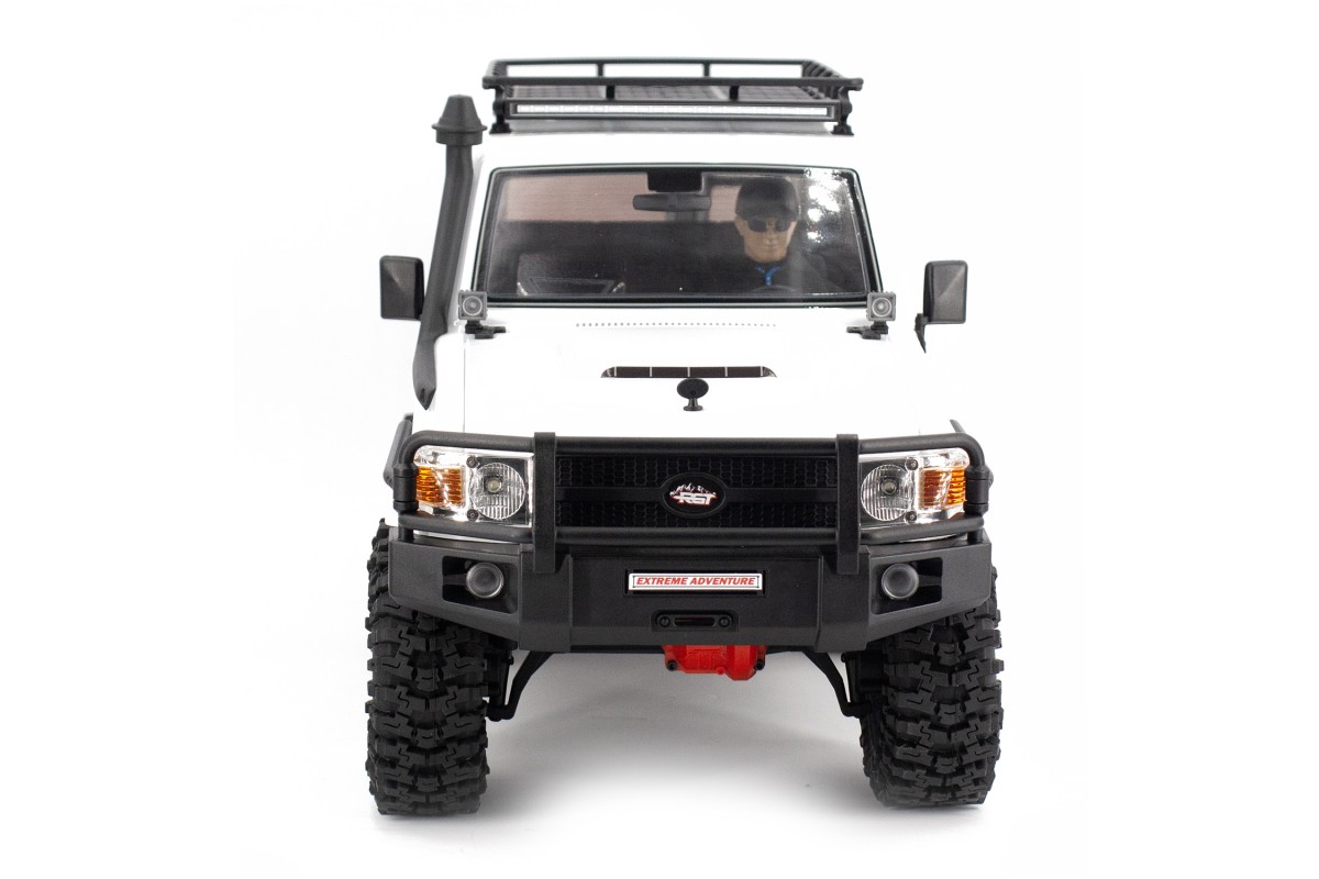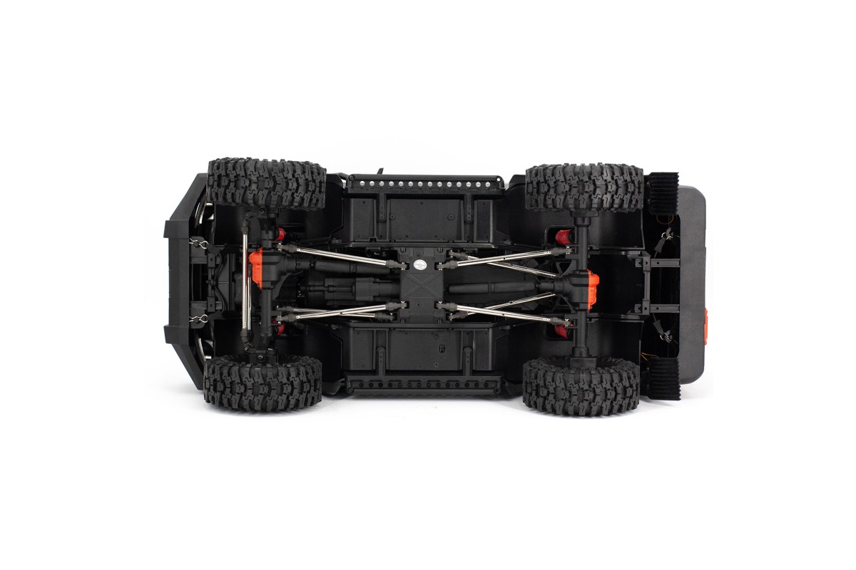 Внедорожник подготовлен для эксплуатации в сложных условиях. Электронный регулятор скорости с влагозащитой, сервопривод рулевого управления с защитой от воды и песка, карданный постоянный полный привод 4WD с дифференциалами из металла, кардан и крестовины из нейлонового композита, защита трансмиссии от попадания песка и камней. Тяги выполнены из анодированного алюминия, а жесткость рамы достигается применением элементов из металлического сплава.