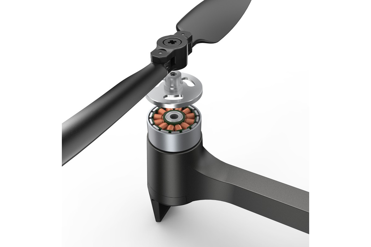 - Беспилотник оснащен эффективными и надежными бесколлекторными двигателями MT1506 2000 KV, вкупе со складными несущими винтами.