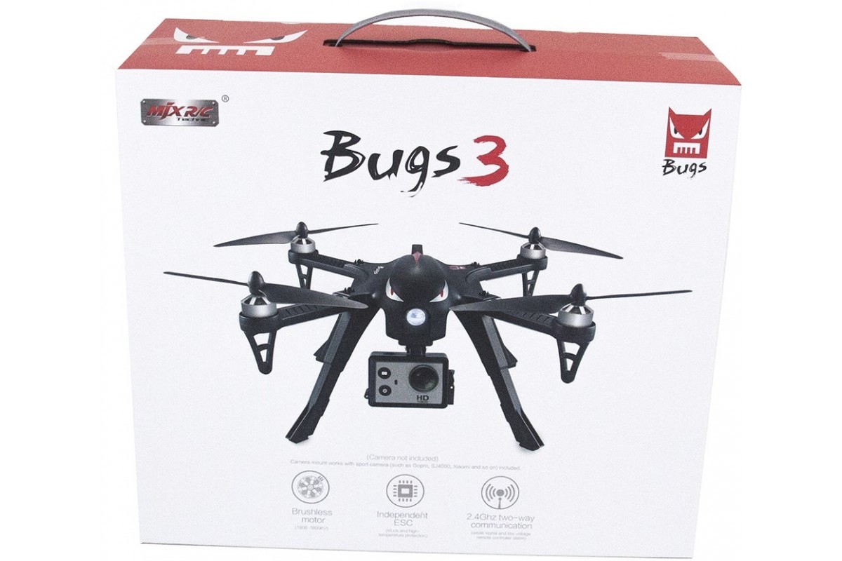 Радиоуправляемый квадрокоптер MJX R/C Black Bugs 3 Brushless 2.4G - B3 - это первый дроп серии Bugs от компании MJX R/C с применением бесколлекторных двигателей. В прошлом компания MJX была хорошо известна производством беспилотников начального уровня. Кроме того MJX Bugs 3 это один из самых недорогих дронов способный совмещать полеты с экшн-камерой и гоночные полеты со скоростью до 40 км/ч.