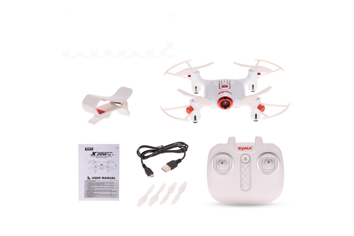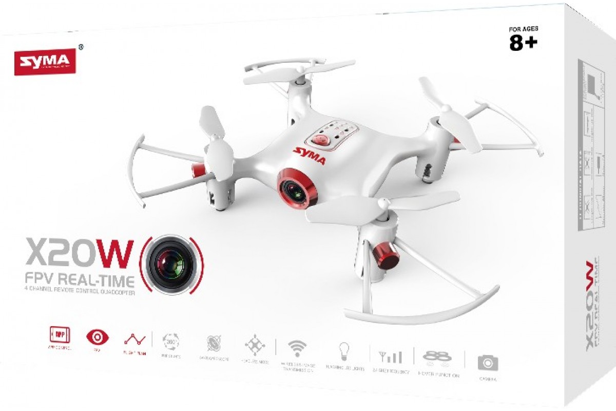 Радиоуправляемый квадрокоптер Syma X20W FPV RTF 2.4G - X20W - это мини-квадрокоптер для обучения с барометрическим датчиком и с FPV трансляцией Wi-Fi, предназначен для полетов в помещении или на улице при отсутствии ветра.