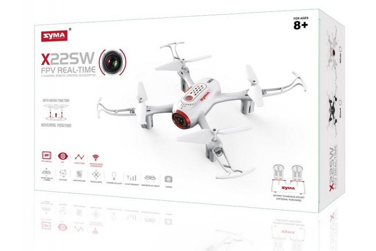 Syma X22SW отличает простое управление – при помощи пульта либо смартфона через специальное приложение Syma Fly. 6-осевой гироскоп обеспечит плавность полета и стабильное удержание высоты. Для еще большего удобства предусмотрены режим Headless Mode и функция взлета и посадки нажатием одной кнопки. Полного заряда батареи хватит на 5 минут полета. При низком заряде аккумулятора Syma X22SW приземляется автоматически.