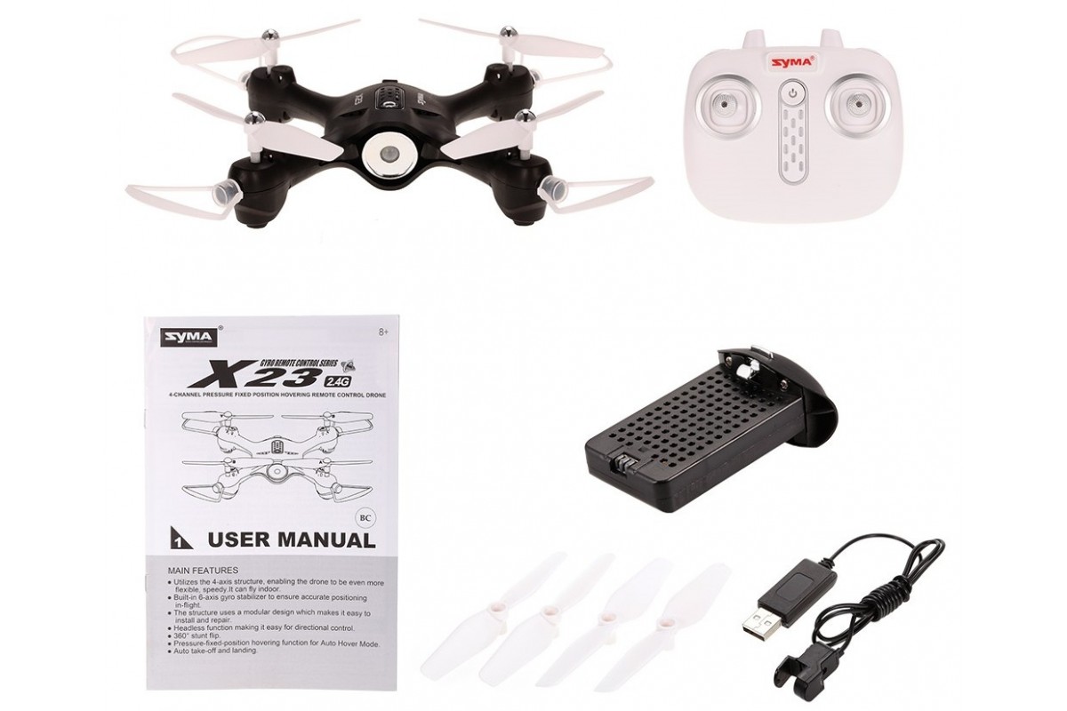 Радиоуправляемый квадрокоптер SYMA X23W BLACK с Wi-Fi FPV камерой - SYMA-X23W-BLACK - это квадрокоптер, оснащенный камерой FPV, которая позволит транслировать видео с высоты на мобильное устройство во время полета. Коптер выполнен из прочных материалов, обеспечивающих ударопрочность и устойчивость к падениям. Управлять можно двумя способами – при помощи пульта и при помощи смартфона через специальное приложение Syma Go. 6-осевой гироскоп обеспечит плавность полета и стабильное удержание высоты. Для полетов в ночное время на коптере установлены мощные функциональные светодиоды. При низком заряде аккумулятора Syma X23W приземляется автоматически.