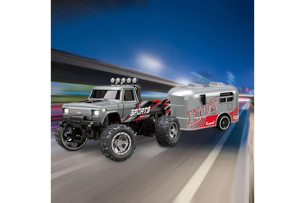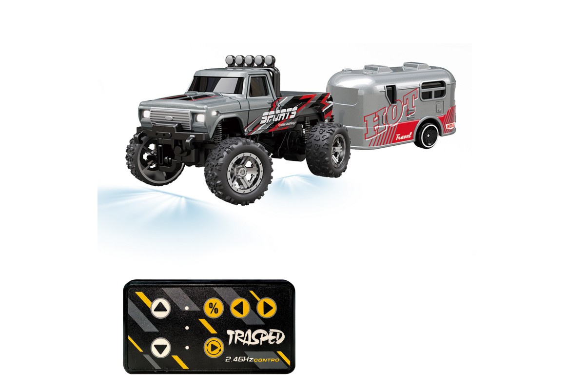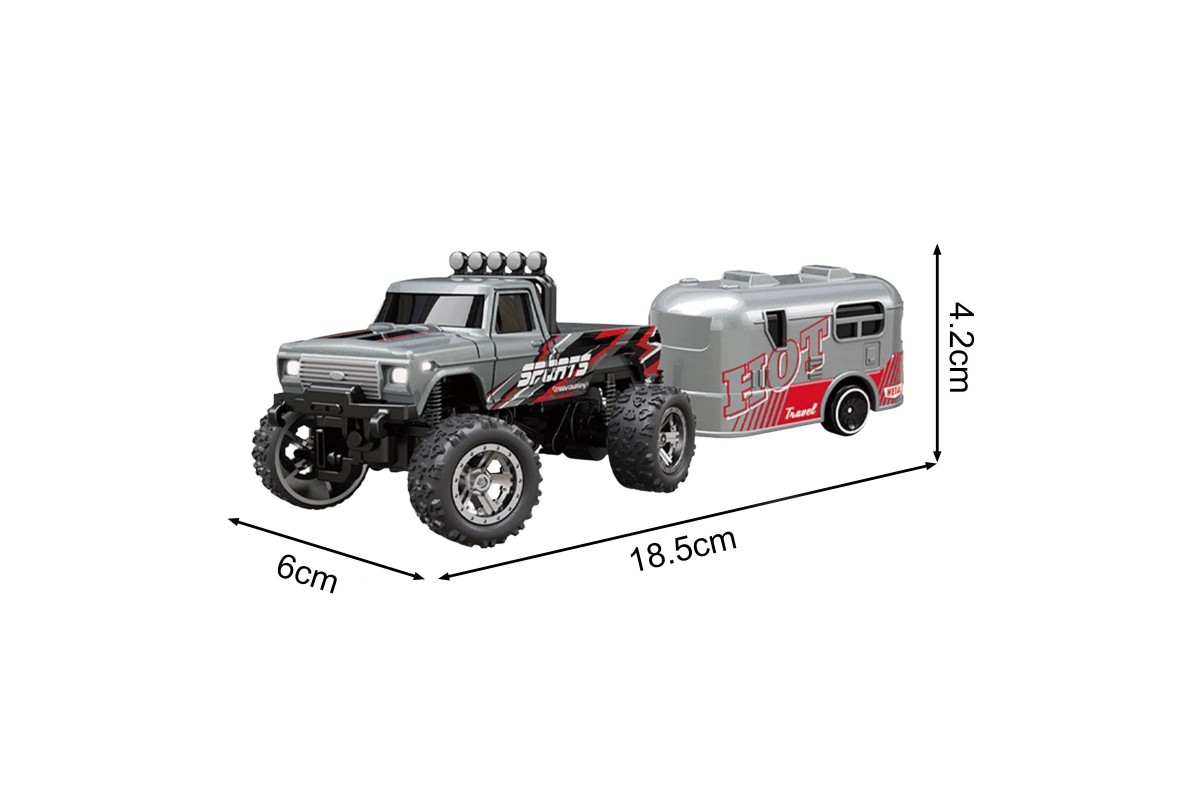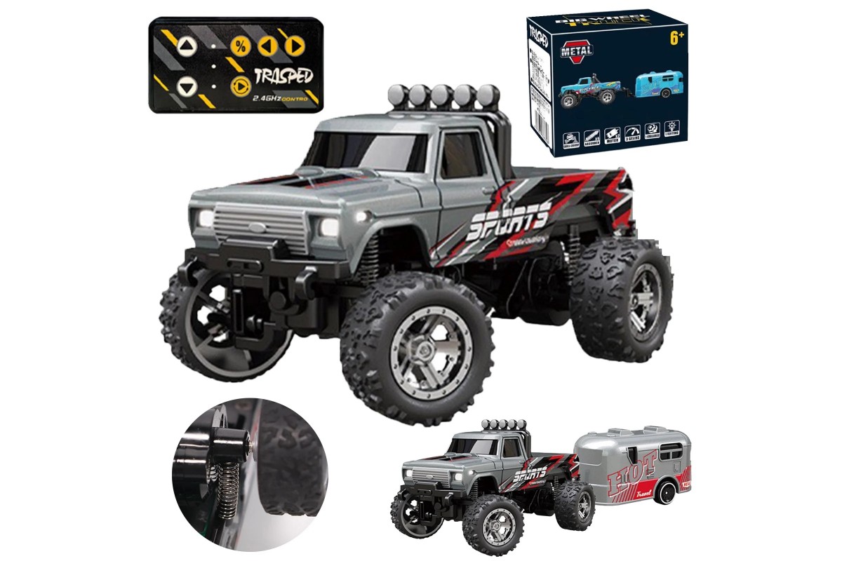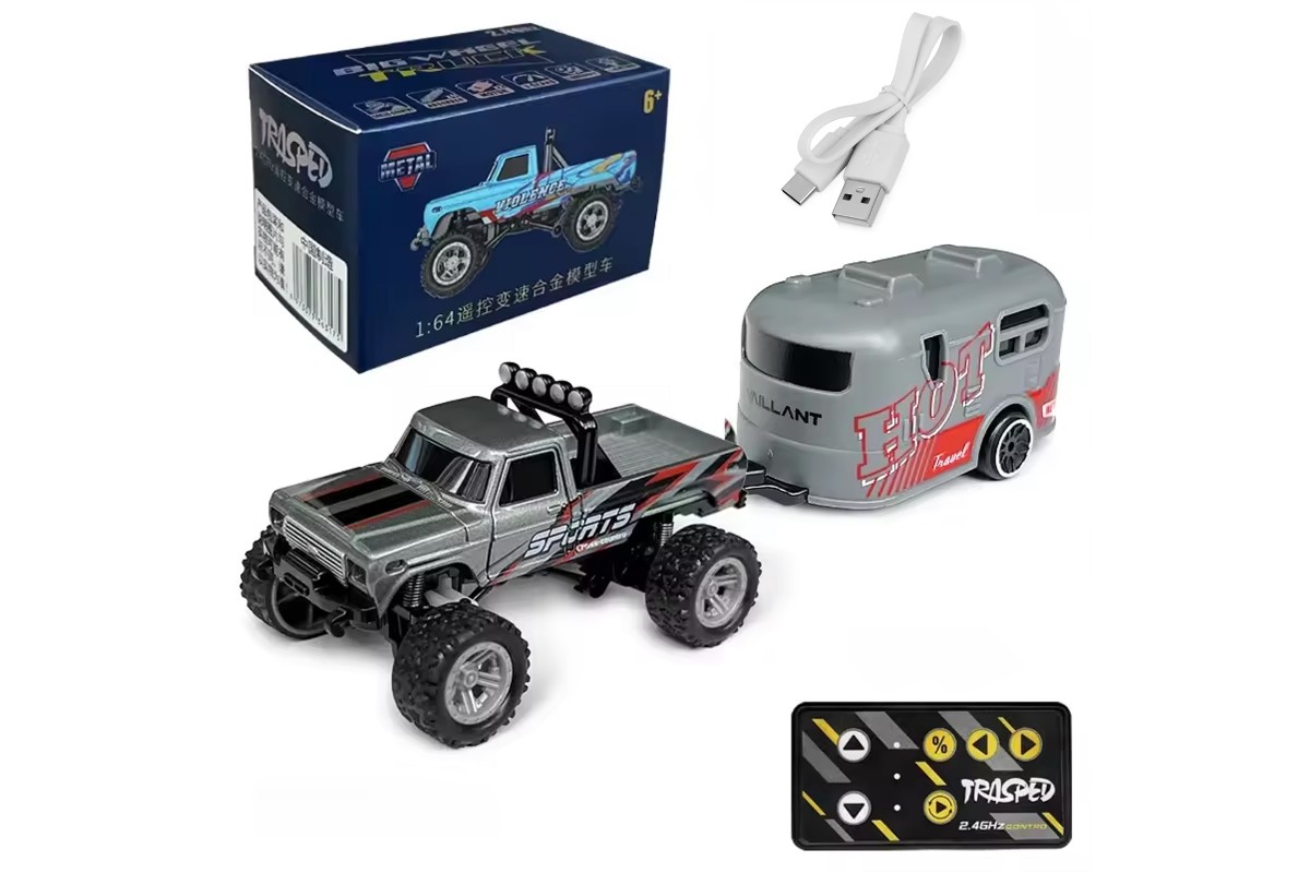 Радиоуправляемый металлический минитрак с прицепом 1:64 - HG4-80-GREY - это миниатюрная модель джипа в комплекте с прицепом, которая была разработана специально для преодоления всевозможных препятствий, все колёса имеют амортизацию и специальный протектор, который позволяет запускать модели и на улице!