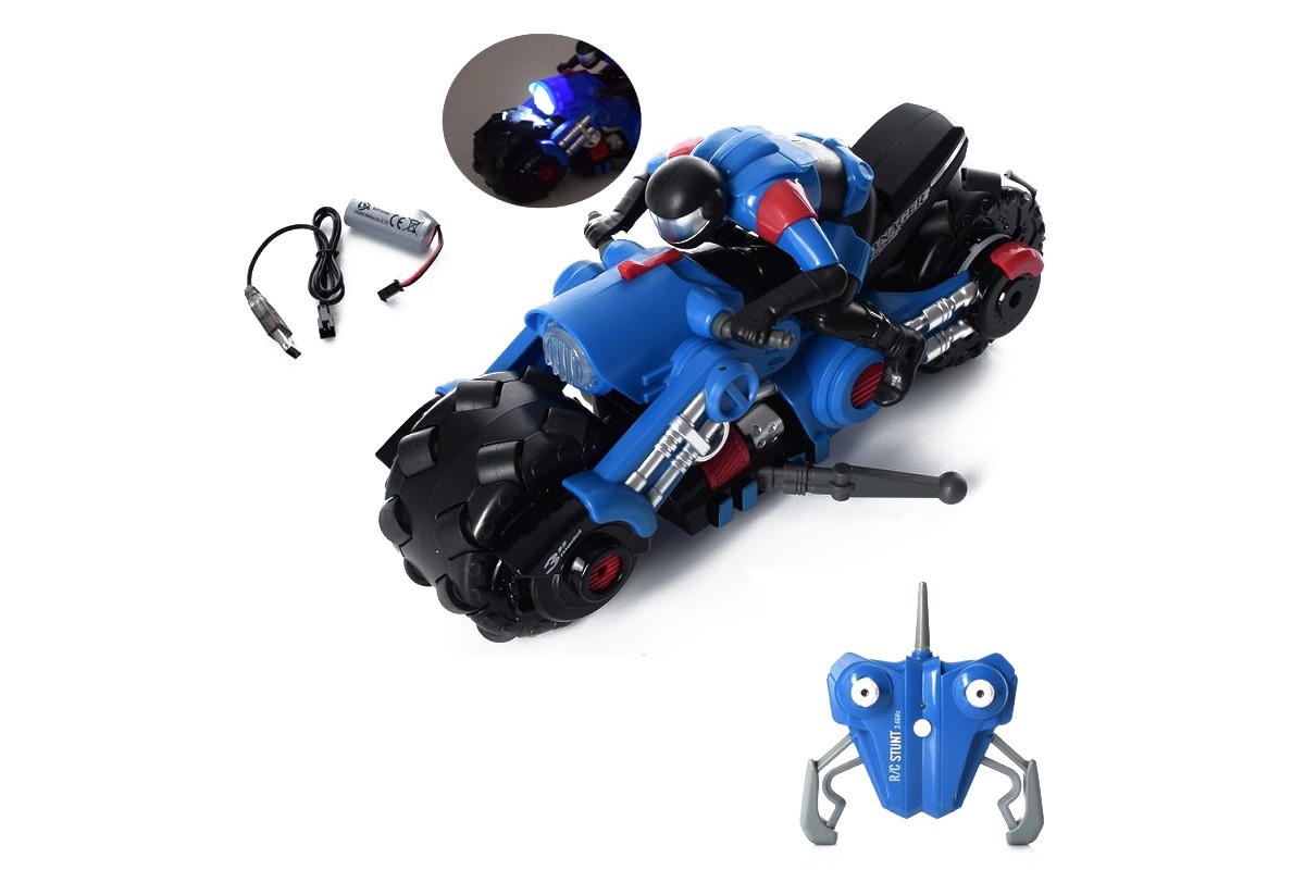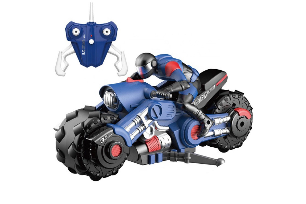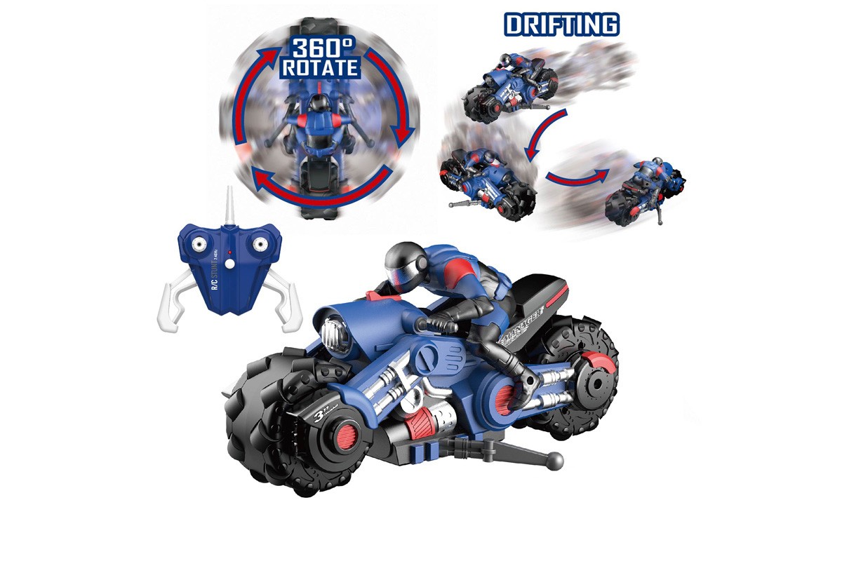 Колеса мотоцикла имеют специальную конструкцию (в каждом из 2-х больших колес есть 36 небольших колесика, расположенные под углом), благодаря чему он очень маневренный и может развивать высокую скорость. У игрушки светятся передняя и задняя фары.