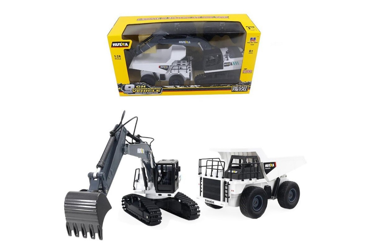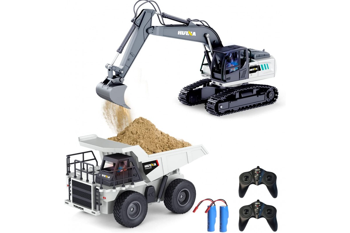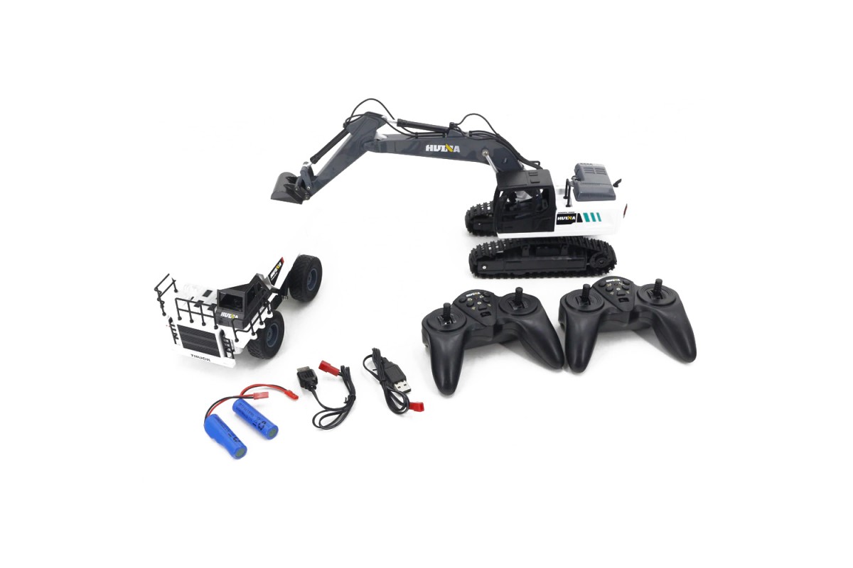 Радиоуправляемый набор экскаватор и самосвал Huina (свет, звук, акб, 1:24) - HN1559 - это набор строительных машин с дистанционным управлением для детей включает в себя экскаватор с дистанционным управлением и перезаряжаемой батареей, а также карьерный самосвал с дистанционным управлением и перезаряжаемой батареей. Кроме того, в этот набор входят два пульта дистанционного управления и два зарядных кабеля. Ваш ребенок достоин двойного удовольствия от игры с друзьями.