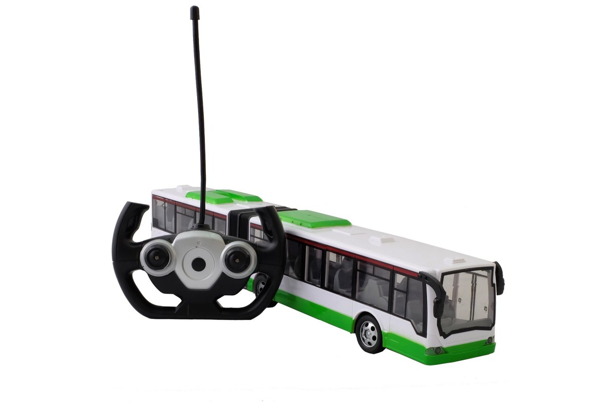 Радиоуправляемый пассажирский Автобус с гармошкой (зеленый) - 666-676A - это автобус, который управляется пультом дистанционного управления, выполненного в виде руля с различными кнопками.