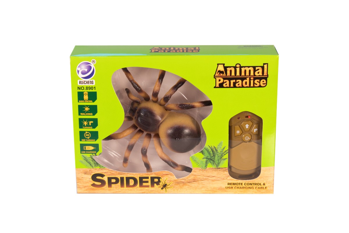 Управление своим новым питомцем происходит посредством пульта дистанционного управления. Паучок обладает реалистичным внешним видом, умеет передвигаться вперед, поворачивать в стороны и даже вращаться на 360 градусов! Также, можно включить демо-режим, в котором паук сам будет решать, что ему делать.