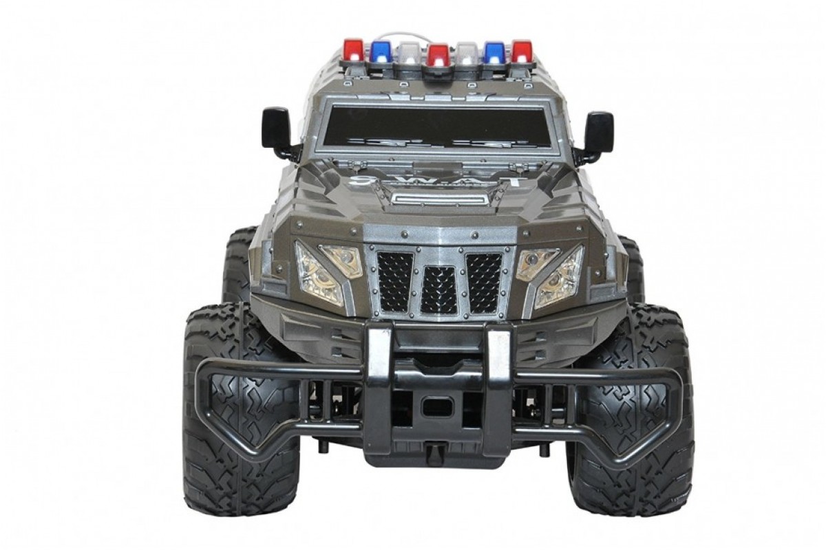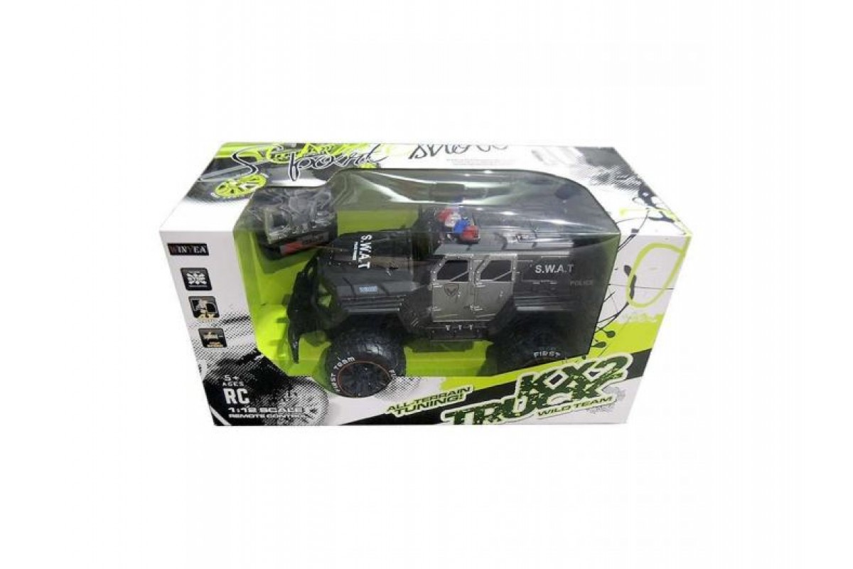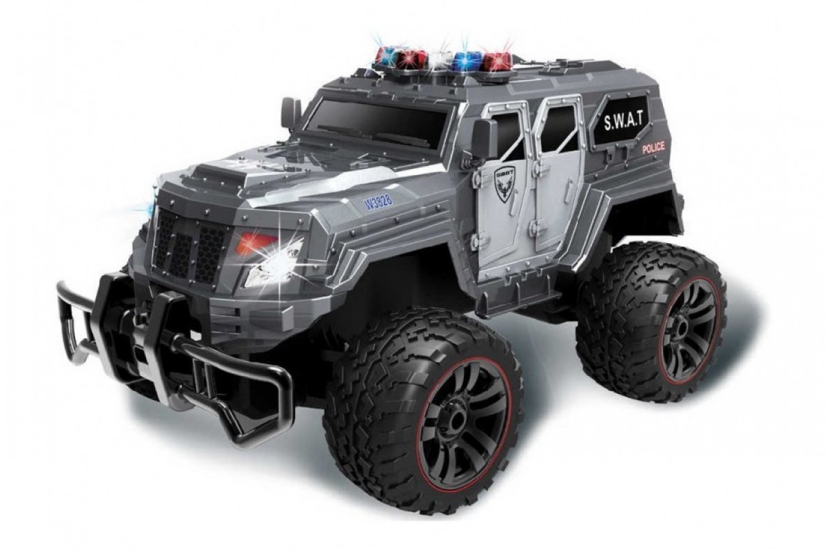 Радиоуправляемый полицейский джип Wineya SWAT 1:12 - W3828N - это мощный и большой (38 см) полицейский джип на радиоуправлении - игрушка, которая понравится не только ребенку, но и взрослому! Машина выглядит очень реалистично и даже брутально благодаря большим колесам, бамперу и расцветке. Машина ездит вперед и назад, совершает повороты направо и налево, останавливается. Включаются фары и проблесковые маячки. Если нажать кнопку, расположенную на крыше, то можно поменять цвет маячков.