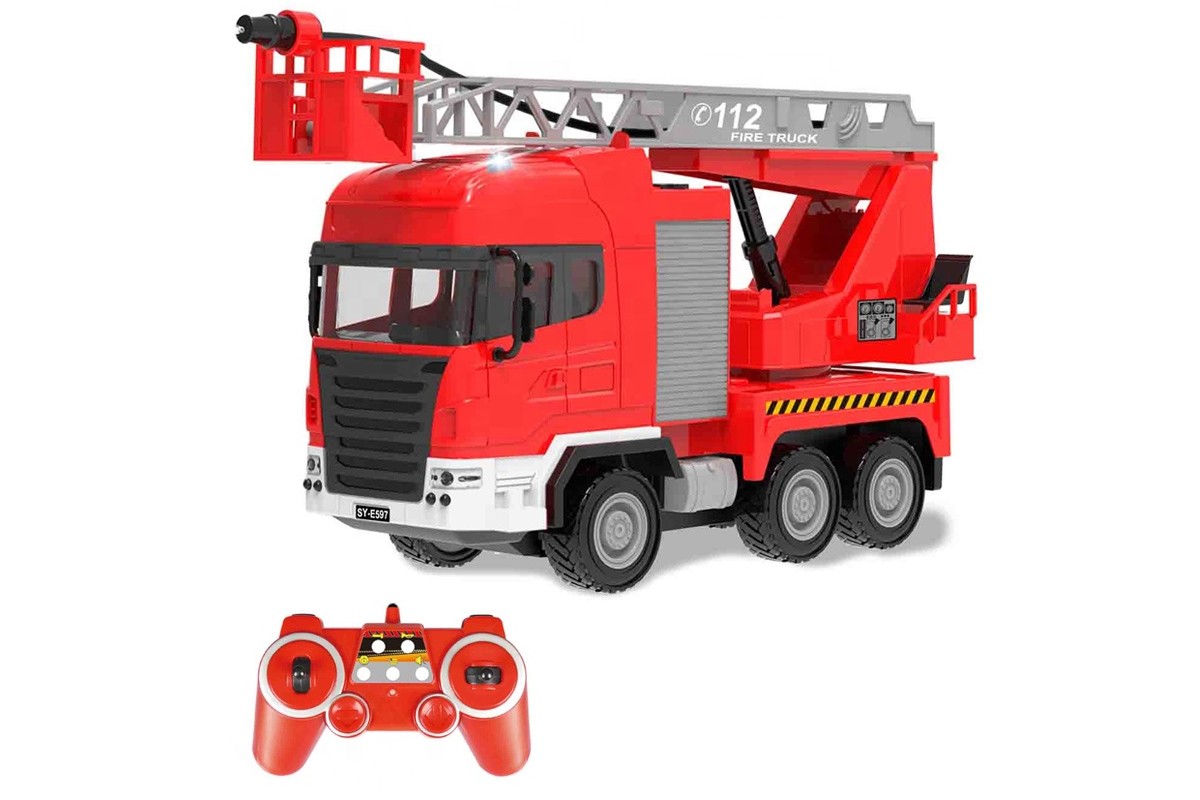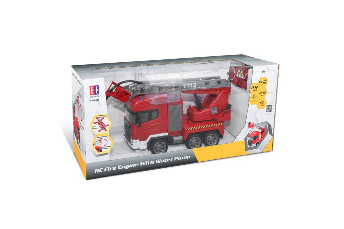 Радиоуправляемый пожарная машина Double E поливает водой 1:20 2.4G - E597-003: это реалистичная модель пожарной машины, управляя которой ребенок сможет ощутить все эмоции спасательной операции по тушению пожара. Оснащенная полным приводом модель, совершает движения во всех направлениях.