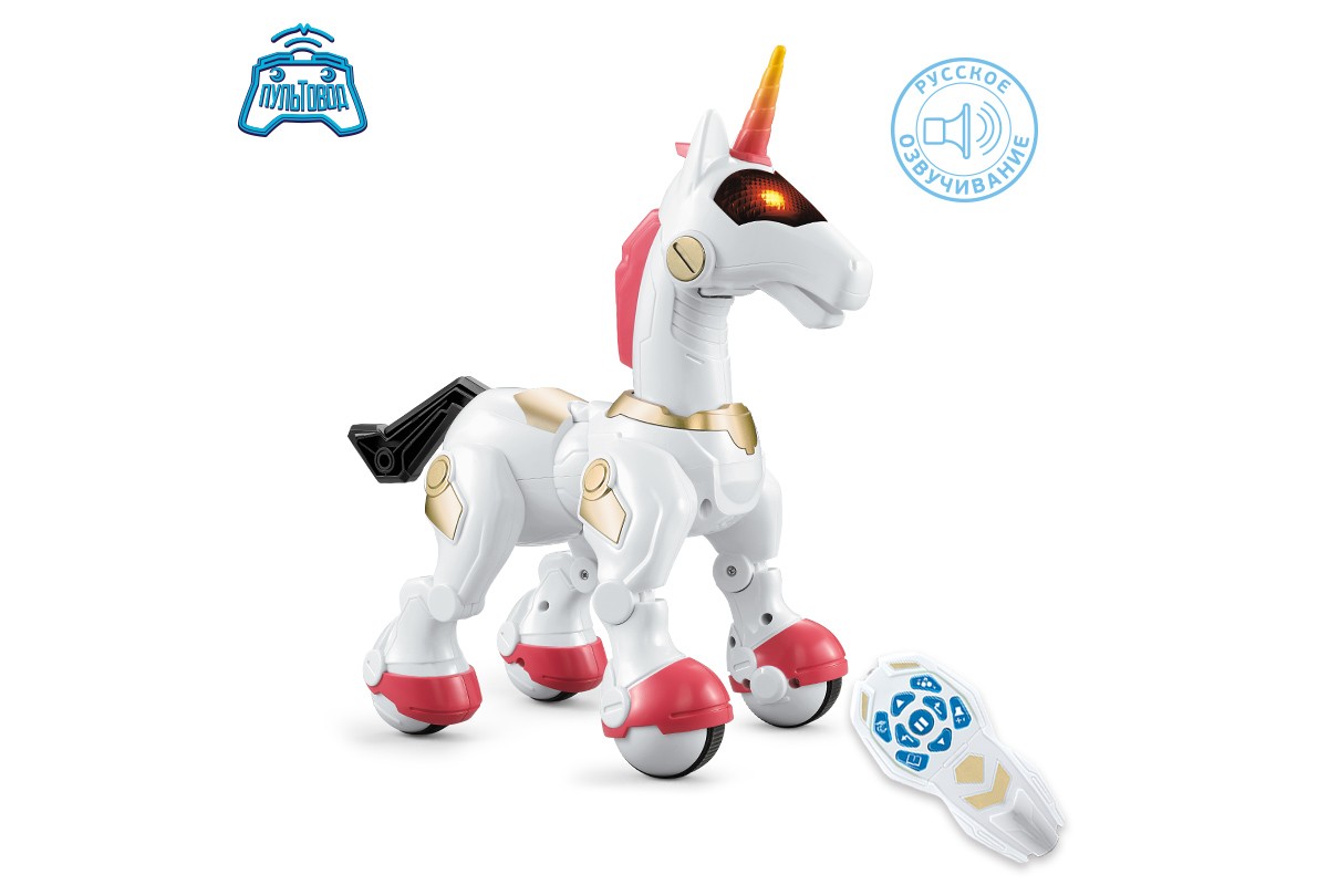 - Единорог издает звуки, песни и рассказывает сказки;