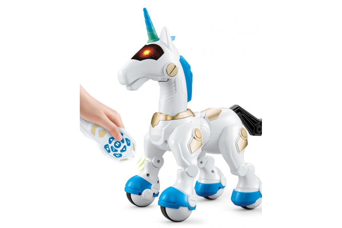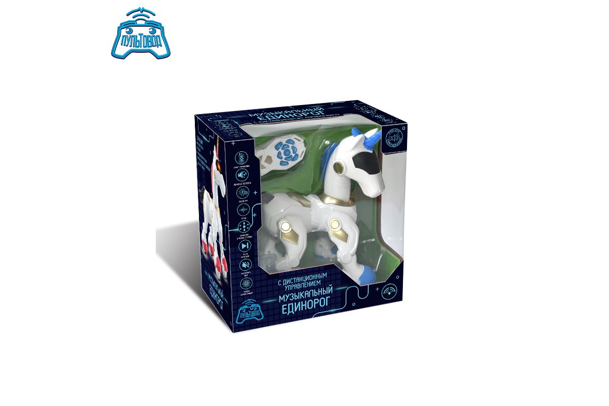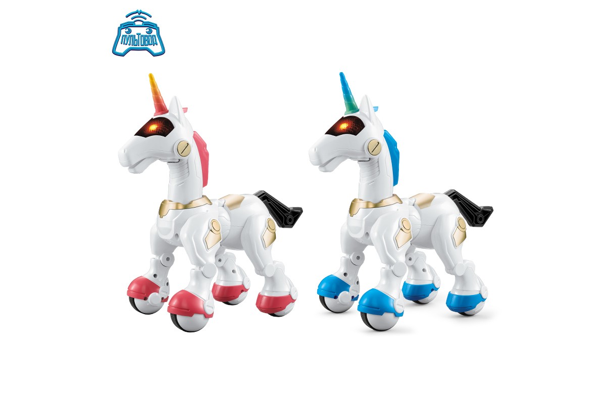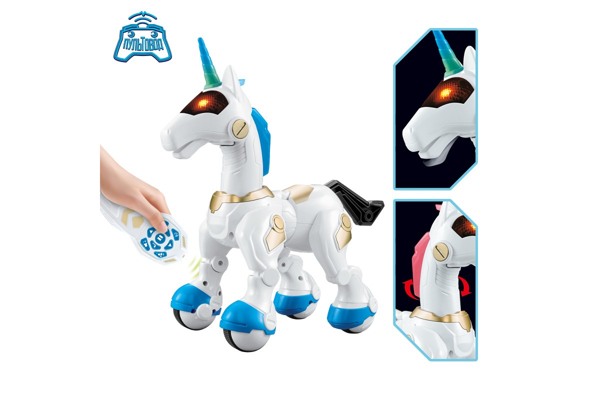 Радиоуправляемый робот Единорог (синий, свет, звук, акб) - ZYA-A2995-BLUE – это игрушка на пульте дистанционного управления для детей от 3-х лет. Музыкальный Единорог с ярким освещением, веселыми песнями и музыкой, сказками из серии ''Пультовод'' на пульте дистанционного управления от компании Zhorya.