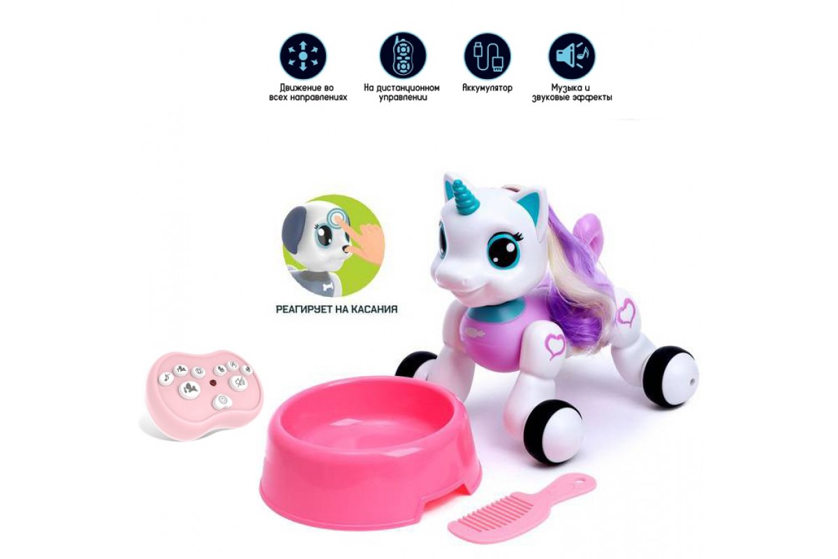 Радиоуправляемый робот Фиолетовый Единорог Пультовод - ZYB-B3832-1-BLUE - это интерактивная игрушка из серии ''Умный Я''. Данная игрушка представляет собой интерактивного Единорога со звуковыми эффектами и на радиоуправлении. Этот чудо-робот, совсем как настоящий зверёк! Берите его с собой в поездки, играйте дома или на прогулке. Он будет издавать забавные звуки, воспроизводить мелодию и реагировать на касания. С таким электронным питомцем малыш точно не заскучает.