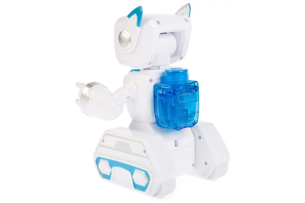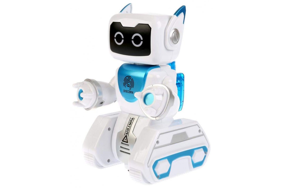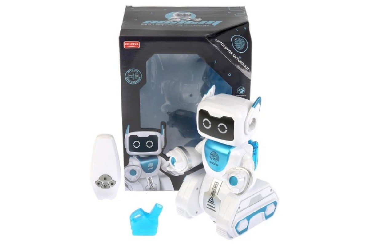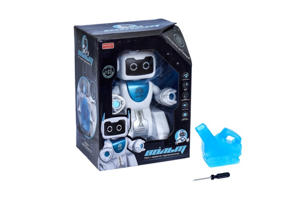 Многофукциональный робот - желанный подарок для мальчика, интересующегося современными технологиями. Функционал игрушки не отстает от последних тенденций в мире робототехники: его новый друг умеет двигаться в разные стороны, поворачивать голову и может развеселить ребенка веселыми фразами. ''Оживить'' робота не составит труда, как и человек, он не может жить без воды, которую нужно перед началом игры налить в специальный отсек за спиной робота. Активация робота отпечатком пальца (встроенный сенсор прикосновения, имитирует сканер отпечатка пальца). Робот умеет двигаться в разные стороны, поворачивать голову и может развеселить ребенка веселыми фразами. Гидроаккумулятор заправляется обычной водой.
