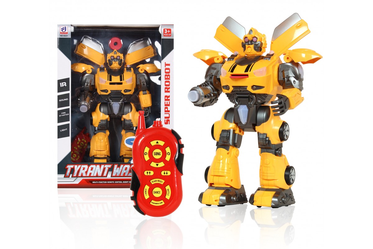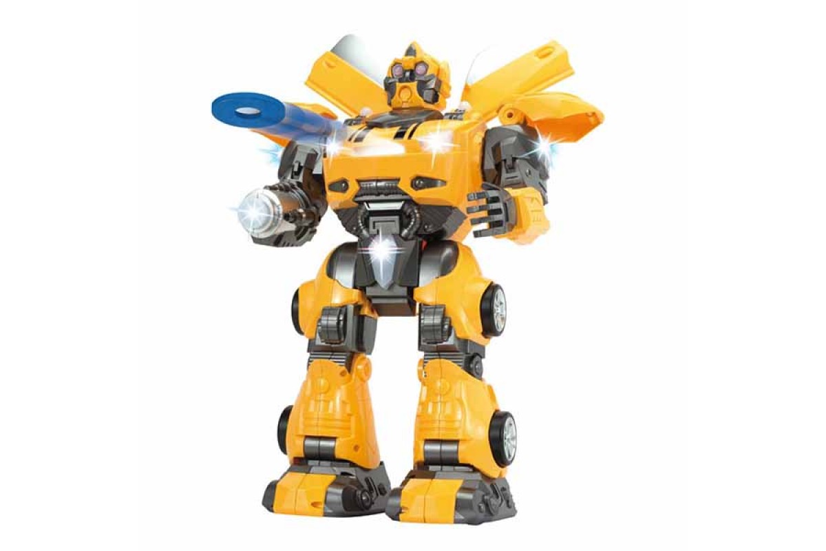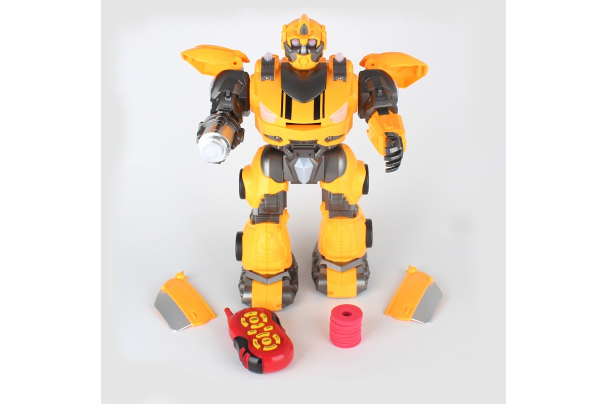 Радиоуправляемый робот трансформер, стреляет дисками - 6021 - это очень интересная игрушка для мальчиков. Робот-трансформер яркий и эффектный внешне, он умеет ходить и танцевать, стрелять дисками и воспроизводить звук, а также имеет встроенные световые эффекты. Высота робота 38 см.
