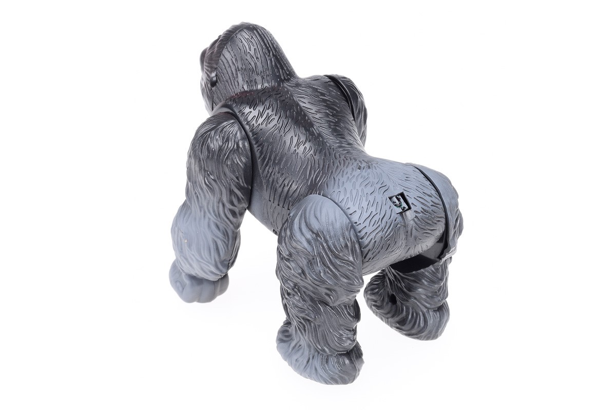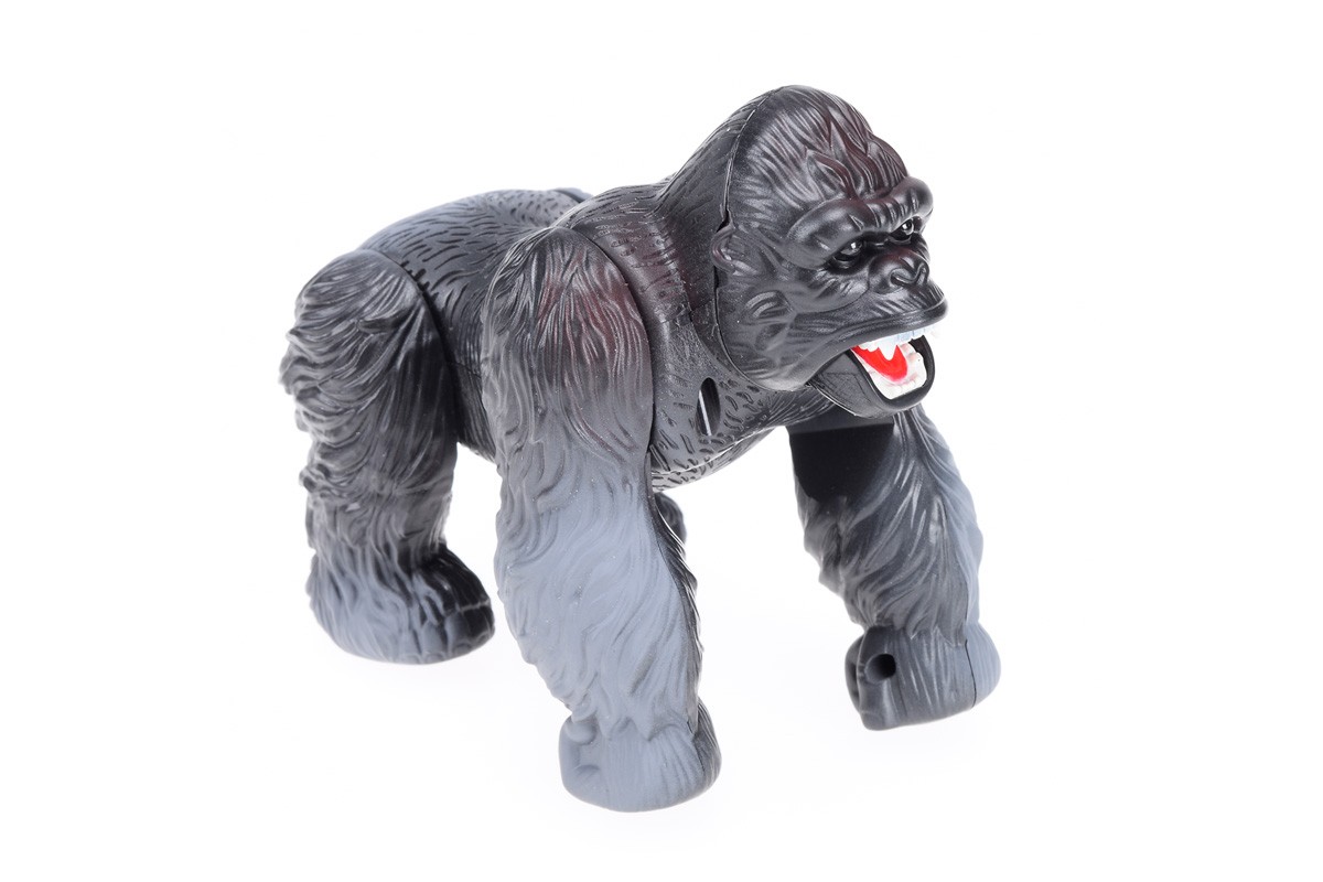 Горилла на радиоуправлении невероятно похожа на Кинг-Конга и выглядит она так же устрашающе. Фигура гориллы очень выразительна, глаза живые, все части тела и лица как у настоящего прототипа, даже шерсть выглядит настоящей, хотя вся фигурка выполнена из пластмассы. Нажимая на кнопки, ребенок увидит, что горилла может ходить, двигать пастью и лапами, вращать головой, издавать звуки.Игры с такими игрушками учат детей пользоваться пультами управления, развивают координацию движений, двигательную активность, мелкую моторику, дают представление о разнообразии животного мира, помогают освоить понятия «вперед», «назад». Все предметы набора выполнены из прочной пластмассы высокого качества, безопасной для ребенка.