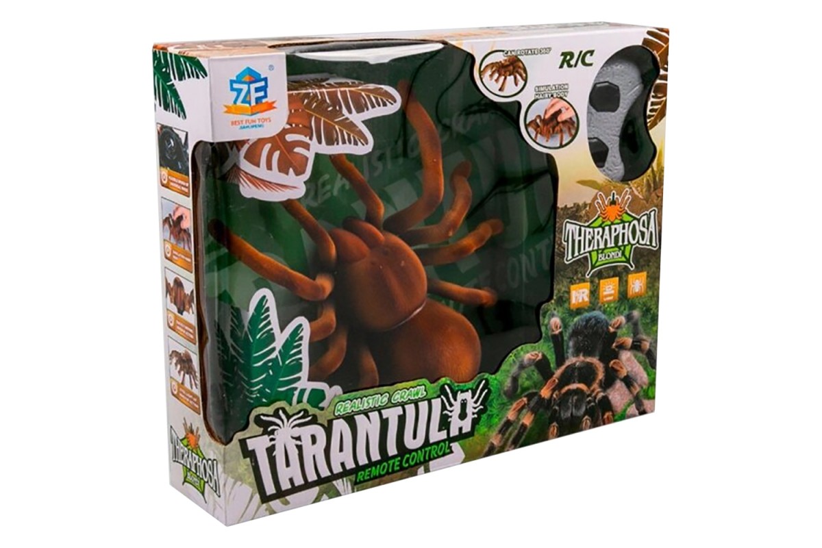 Радиоуправляемый робот ZF Паук Тарантул - 9986M - это огромный радиоуправляемый мохнатый паук тарантул, который станет прекрасным подарком озорному мальчишке. Эта игрушка вызовет у ребенка неописуемый восторг от предвкушения всех возможных розыгрышей и вызываемого у окружающих испуга. Радиоуправляемый Тарантул изготовлен в натуральную величину, выглядит как настоящий мексиканский красноколенный тарантул и что самое захватывающее – передвигается как самый настоящий паук.