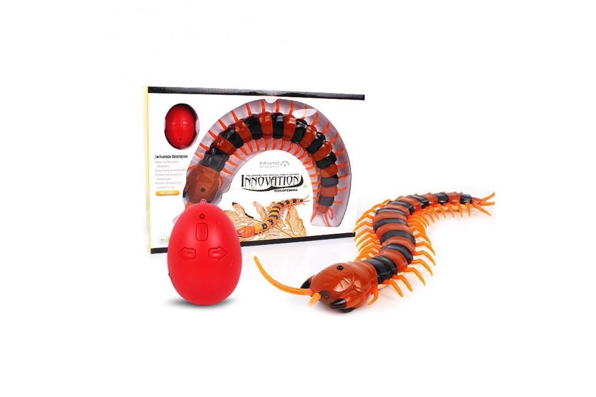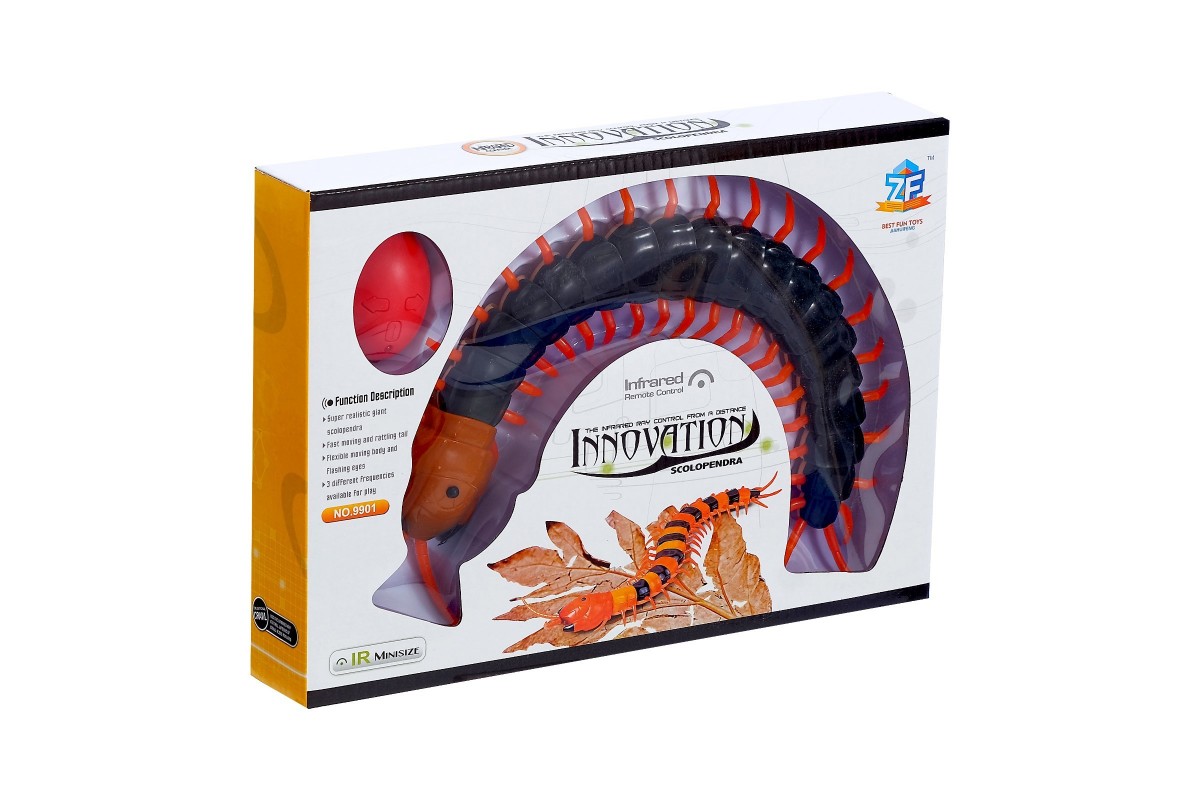 Радиоуправляемый робот ZF Сороконожка - 9901 - это сороконожка на инфракрасном управлении, которая реалистично передвигается по полу, копируя пластику настоящей сколопендры и даже шевелит языком. Сколопендра передвигается вперед, по дуге вправо и влево, вращается на месте. Управляется игрушка при помощи пульта, выполненного в виде змеиного яйца.