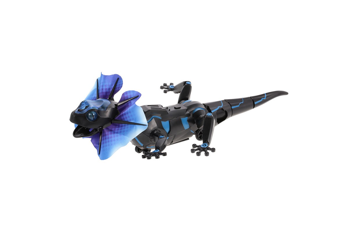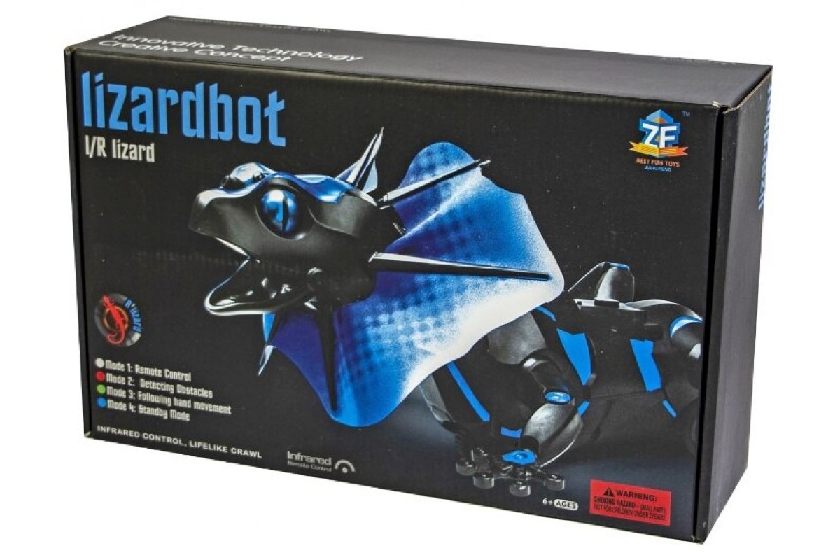 Радиоуправляемый робот ZF Ящерица LizardBot - 9918 - это интерактивная игрушка Варан на инфракрасном управлении черно-синего цвета с гибким туловищем, подвижными лапками, открывающейся пастью и плащом на шее может передвигается по полу, копируя пластику настоящего животного. Умеет двигаться вперед, назад и поворачиваться. У варана 4 игровых режима, которые переключаются нажатием на панель на его спине. Каждый режим имеет свою LED подсветку.