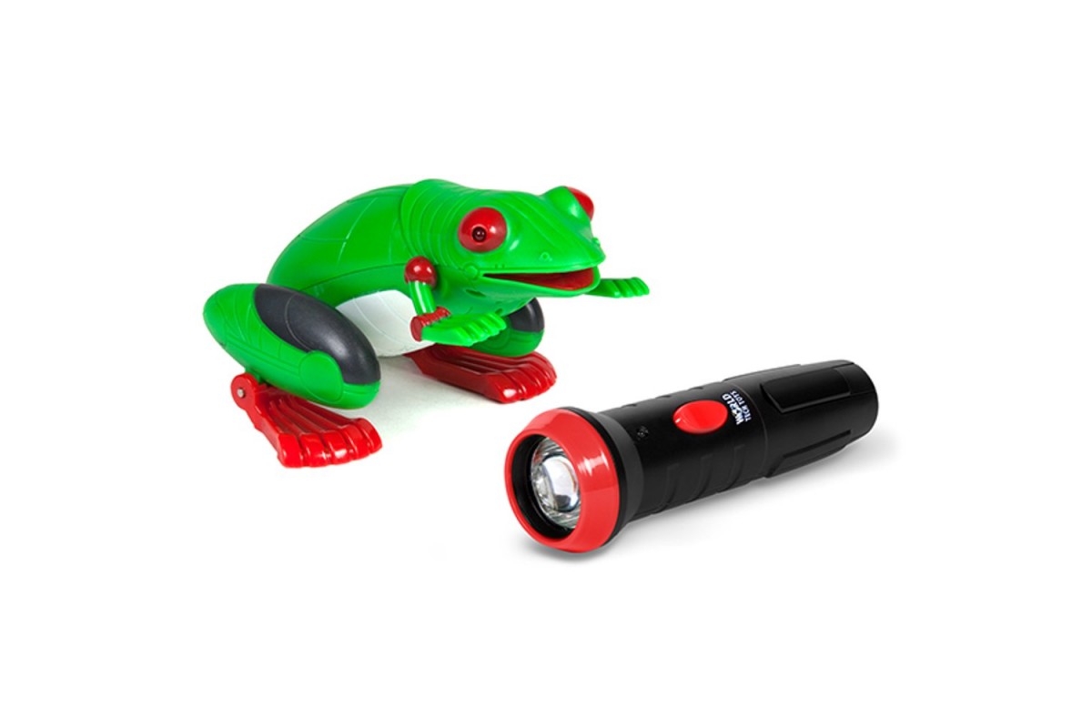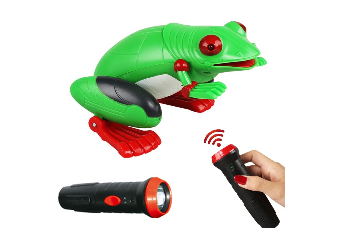Радиоуправляемый робот ZF Зеленая Лягушка - ZF-9984A - это лягушка на инфракрасном управлении, которая станет отличным подарком для каждого малыша! Лягушка реагирует на прикосновение и начинает прыгать вперед совсем как настоящая. Управление осуществляется при помощи ИК-пульта, который выполняет еще и функцию фонарика. Наблюдать за перемещением лягушки будет интересно как детям, так и взрослым.